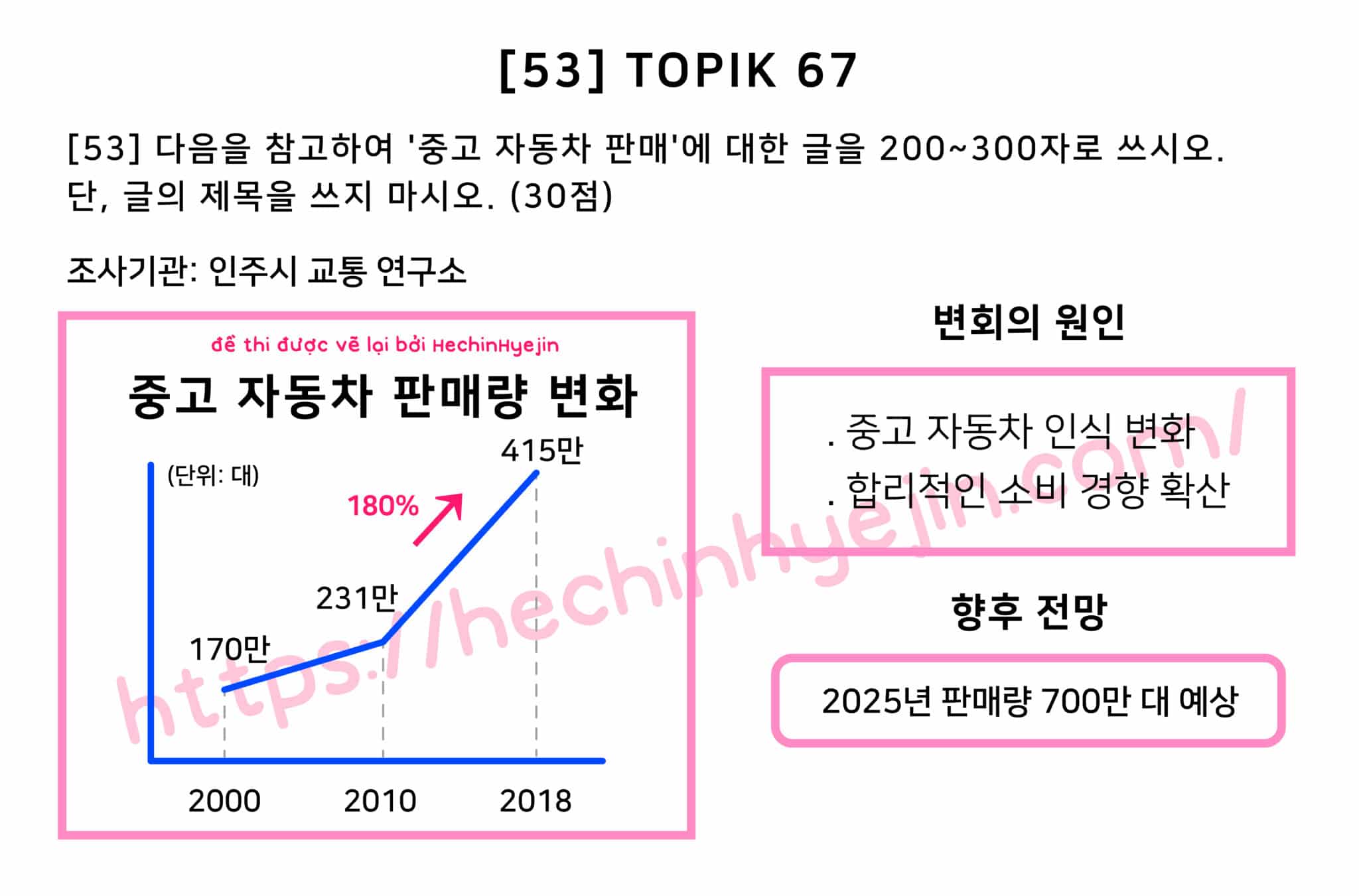 최근 교통연구소에서 중고자동차 판매량 변화와 전망에 대한 조사를 실시했다. 그 결과를 살펴보면, 2000년에는 170만 대