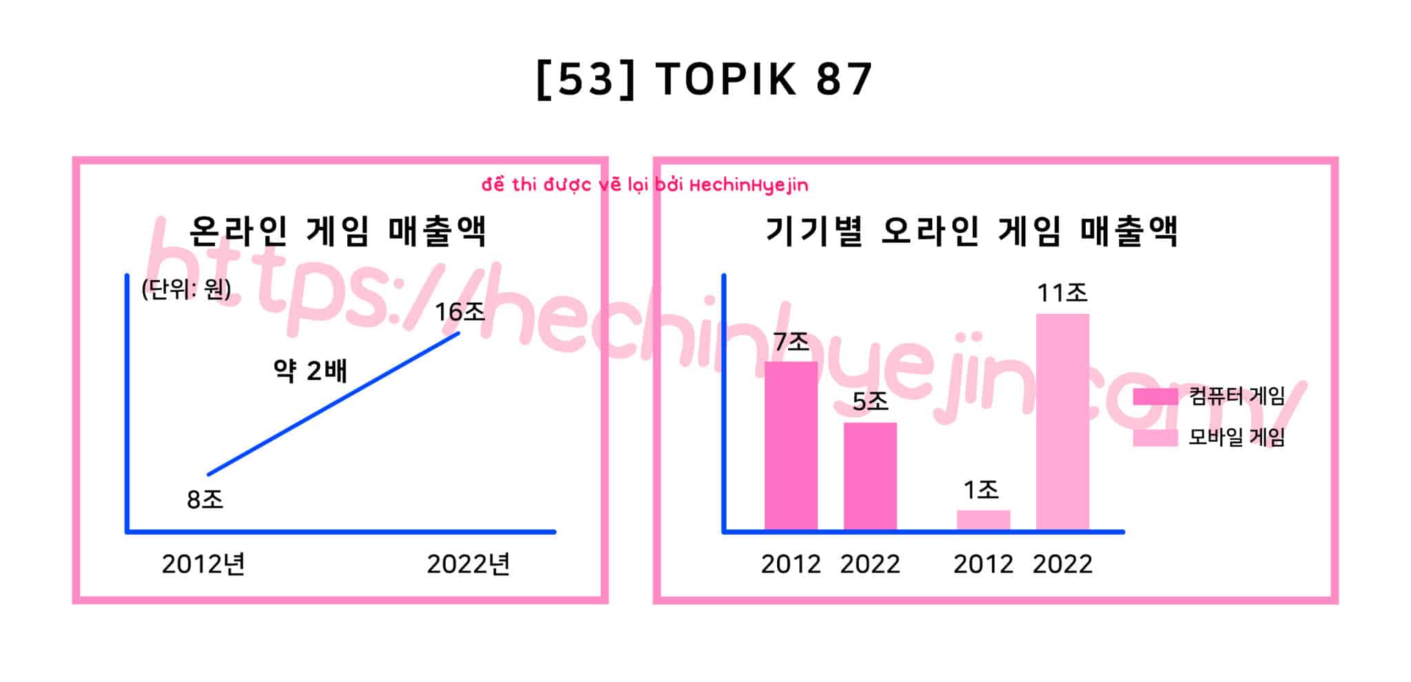 한국 온라인 게임협회에서 국내 온라인 게임의 매출액 변화에 대한 조사를 실시하였다. 그 결과, 2012년에 8조 원이었던 온라인 게임의 매출액은 2022년에는 16조 원으로 10년 만에 2배나 증가한 것으로 나타났다. 한편, 기기별 온라인 게임 매출액을 보면 같은 기간 컴퓨터 게임은 7조 원에서 5조 원으로 감소한 반면 모바일 게임은 1 조 원에서 11조 원으로 크게 상승한 것으로 보인다. 이러한 변화의 원인은 첫째 스마트폰의 대중화로 인해 게임 연령층이 증가했으며 둘째 다양한 온라인 게임이 출시되어 컴퓨터 게임 이용자가 모바일 게임으로 이동했기 때문인 것으로 조사되었다.