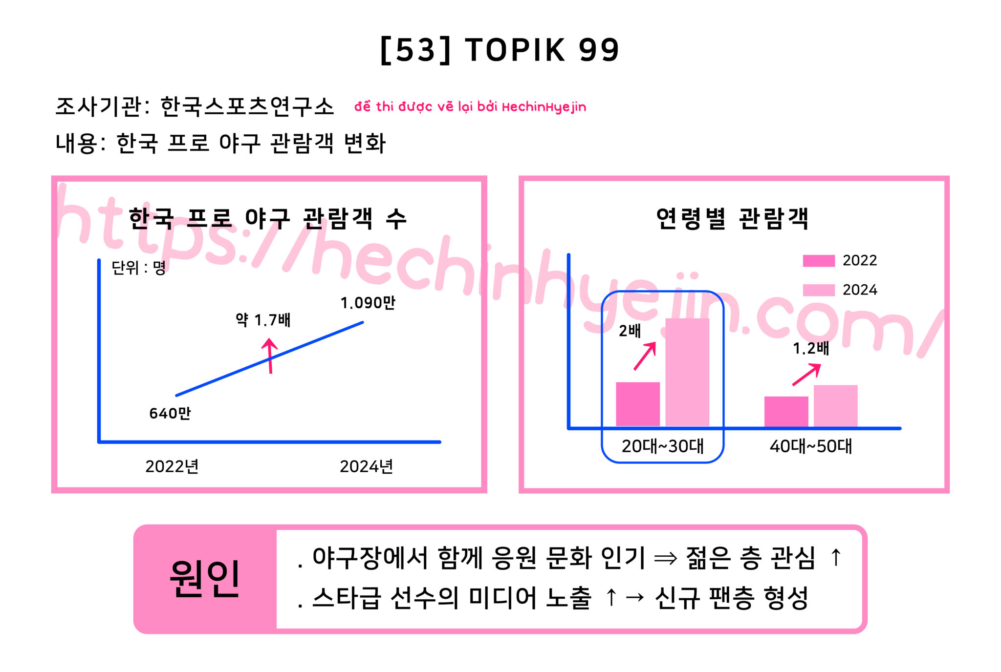 [53] 다음을 참고하여 '한국 프로 야구 관람객의 변화'에 대한 글을 200~300자로 쓰시오. 단, 글의 제목은 쓰지 마시오.