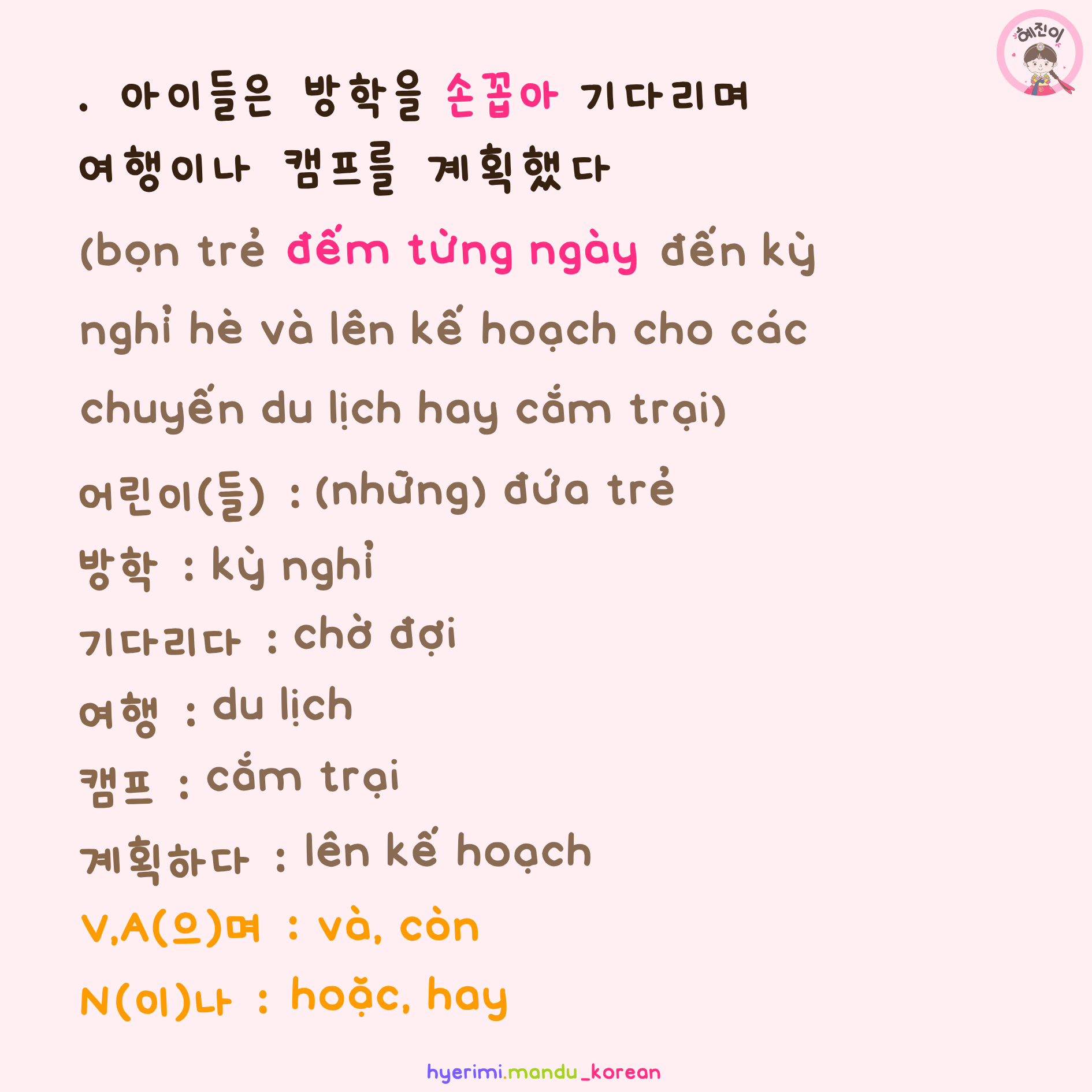 (bọn trẻ đếm từng ngày đến kỳ nghỉ hè và lên kế hoạch cho các chuyến du lịch hay cắm trại)