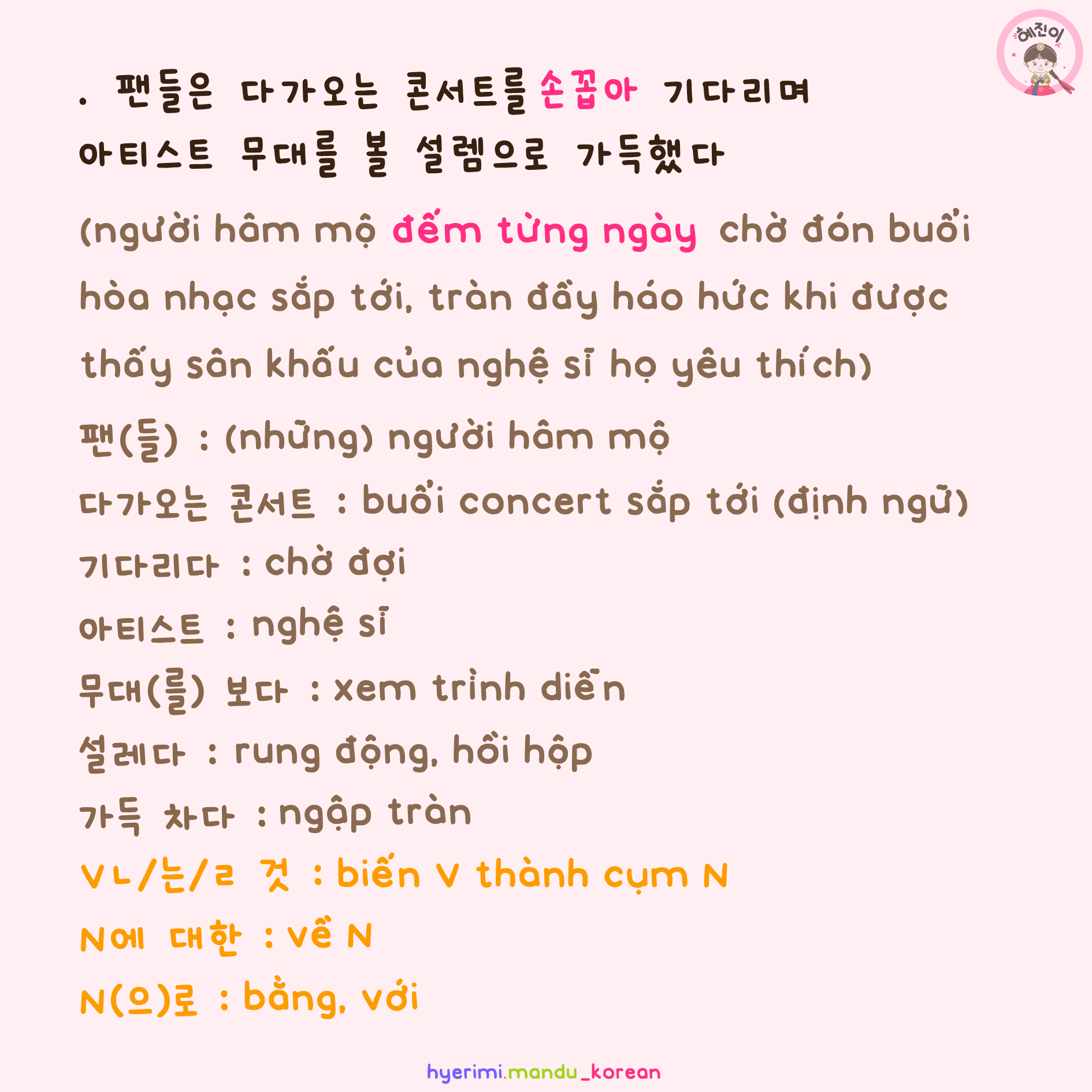 다가오는 콘서트 : buổi concert sắp tới (định ngữ)