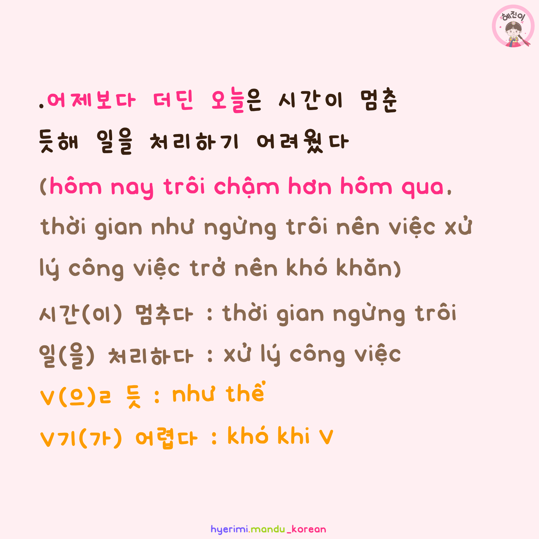 . 어제보다 더딘 오늘은 시간이 멈춘 듯해 일을 처리하기 어려웠다