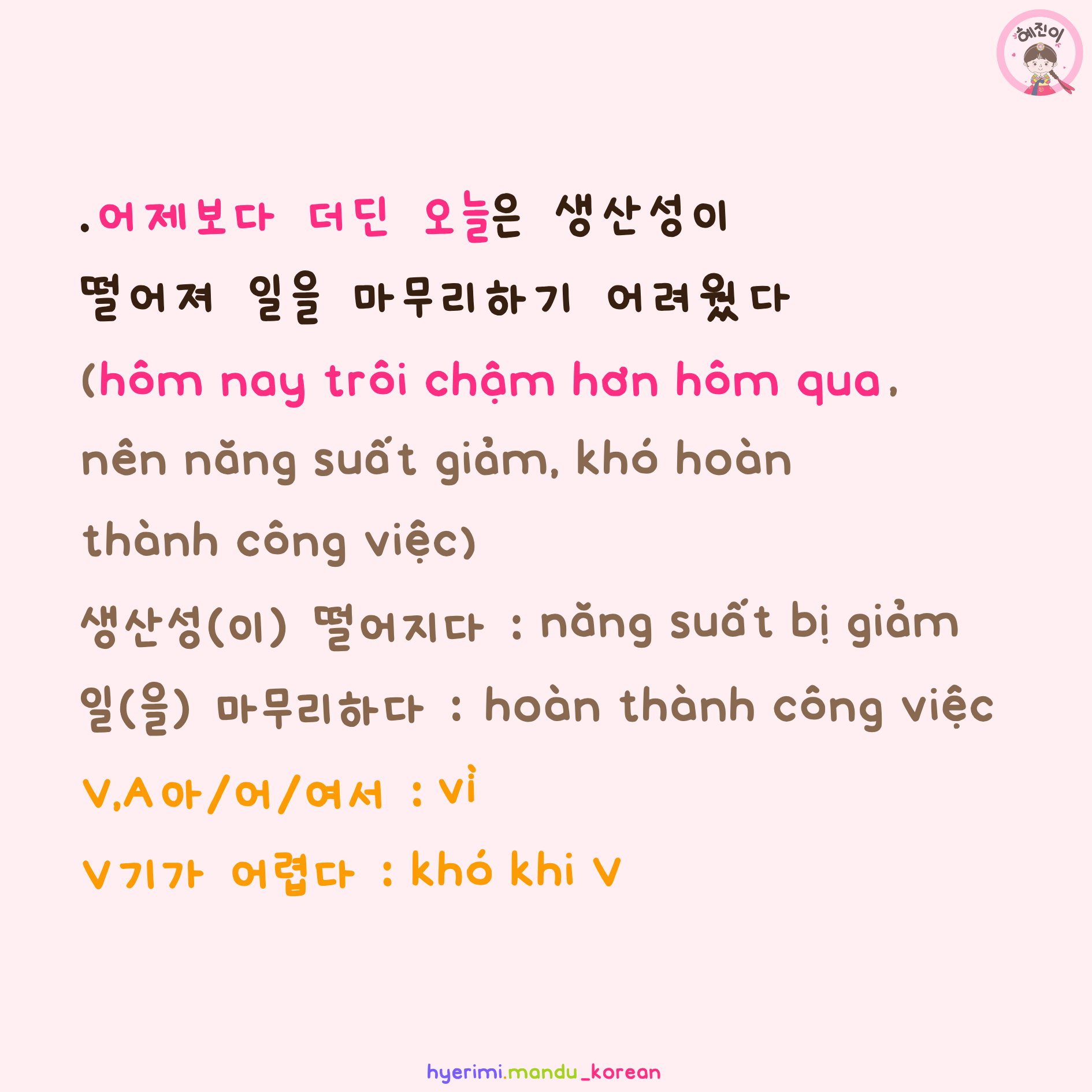 (hôm nay trôi chậm hơn hôm qua, nên năng suất giảm, khó hoàn thành công việc)