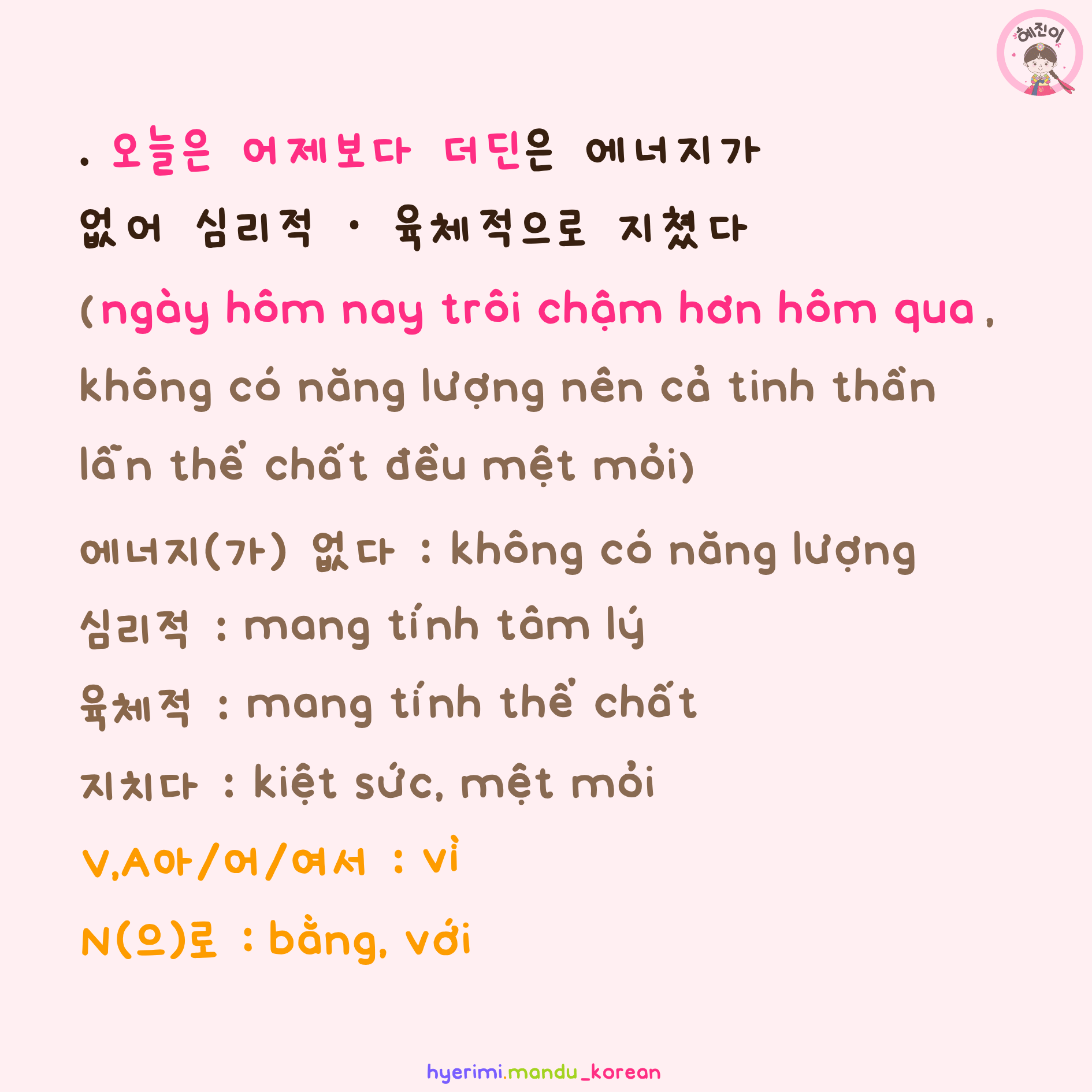 . 오늘은 어제보다 더딘은 에너지가 없어 심리적 · 육체적으로 지쳤다