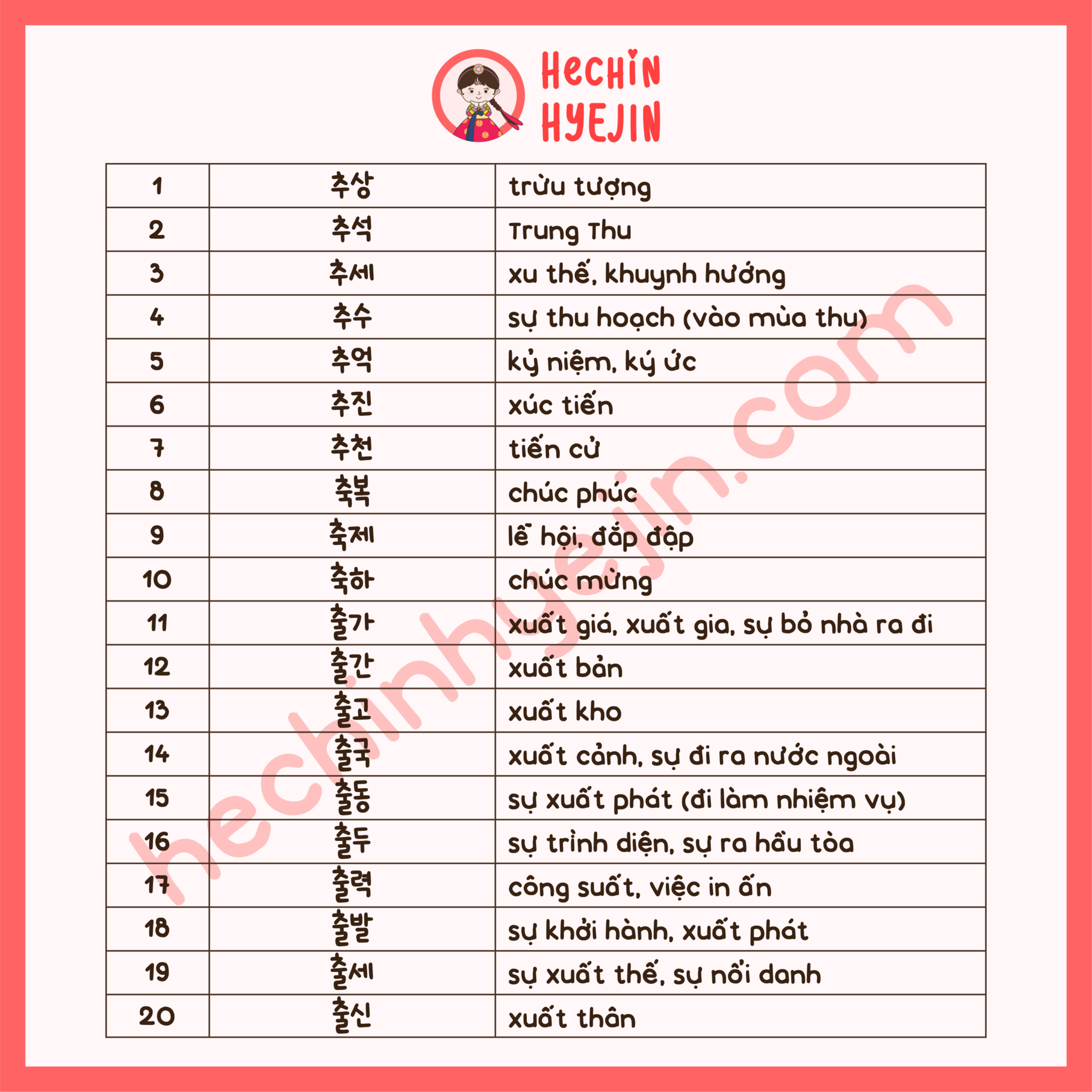 TỔNG HỢP TỪ VỰNG HÁN HÀN THEO PHÁT ÂM