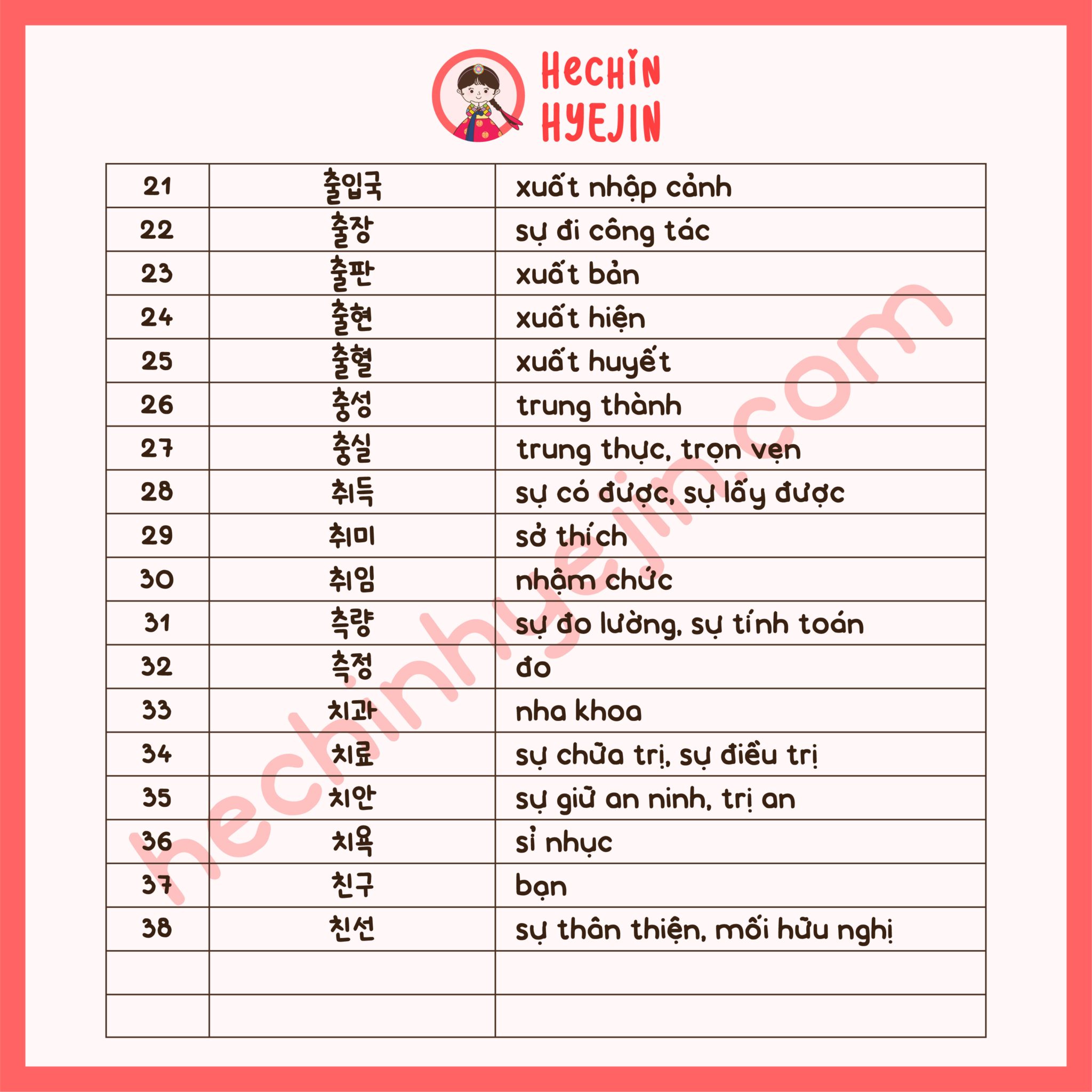 [Từ Vựng Hán Hàn]