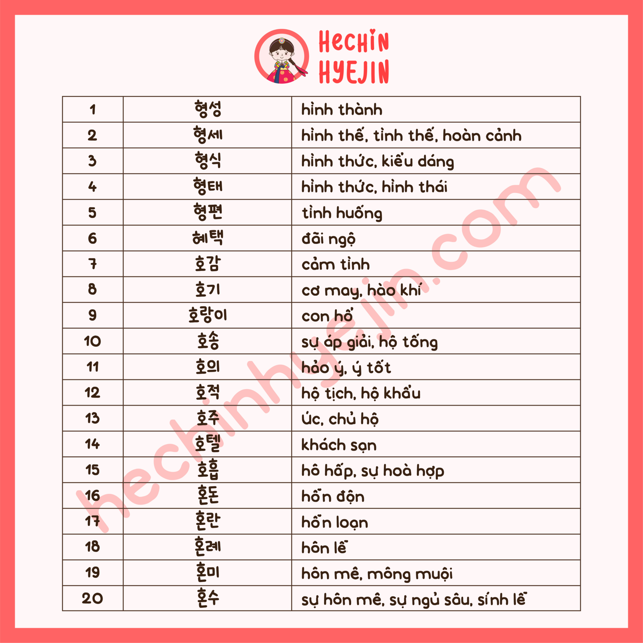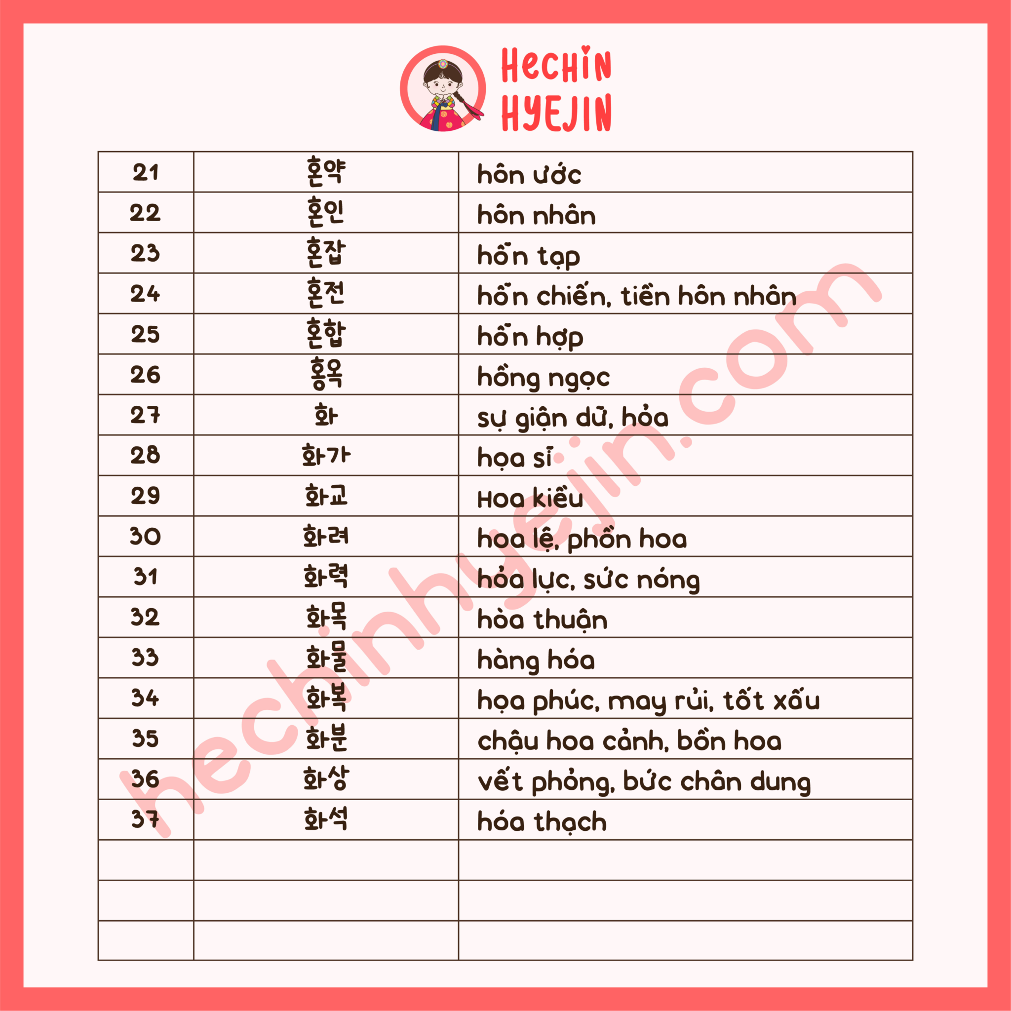 [Từ Vựng Hán Hàn]