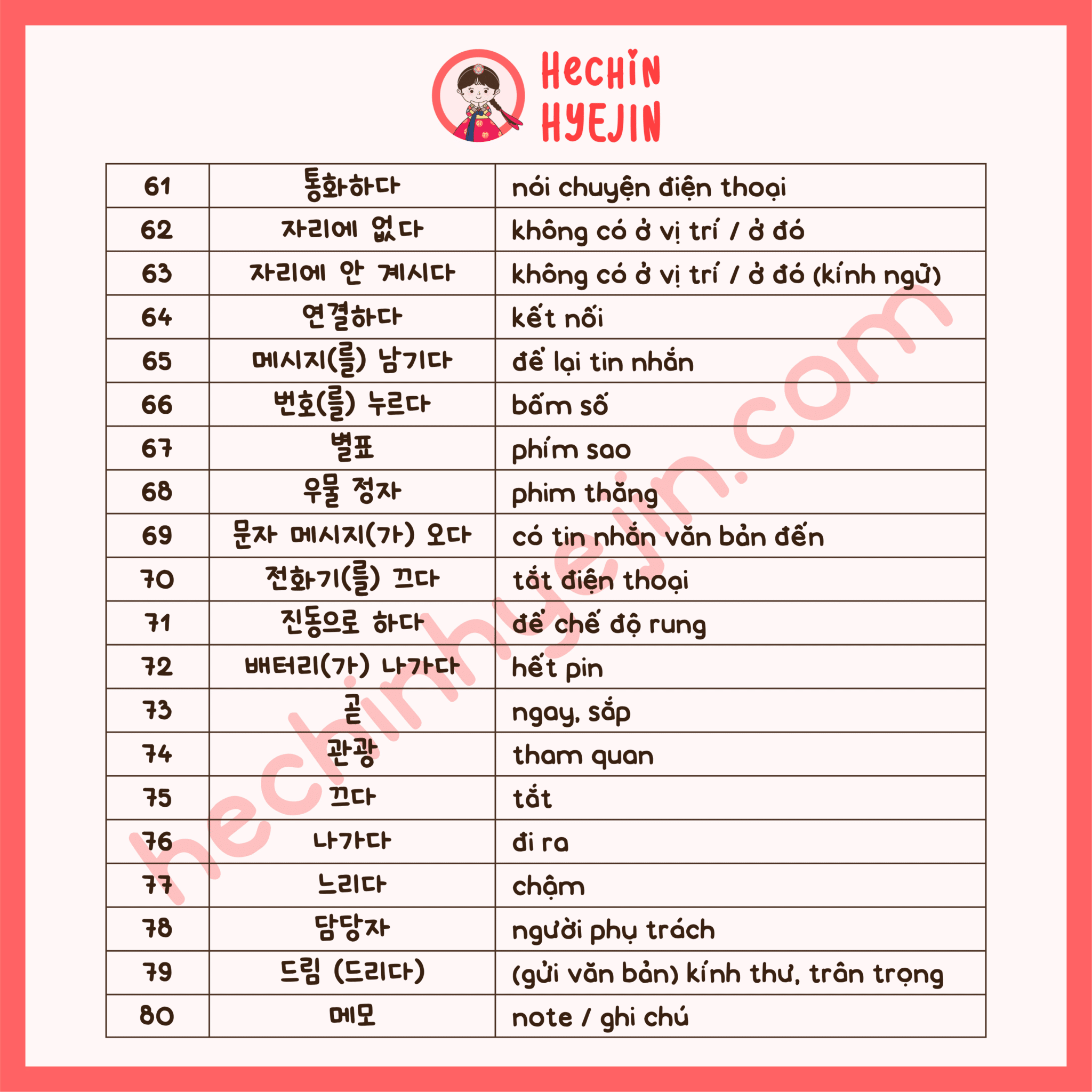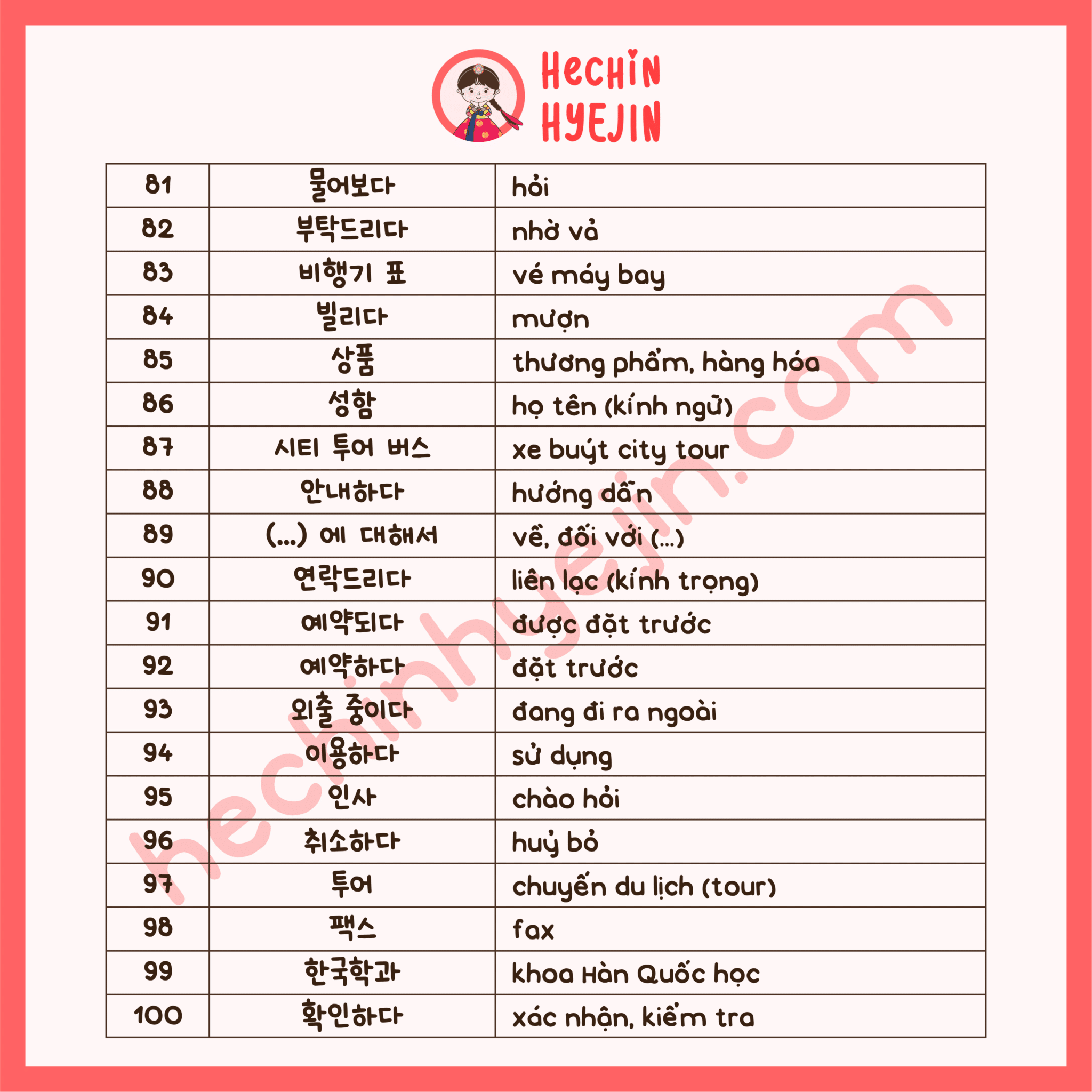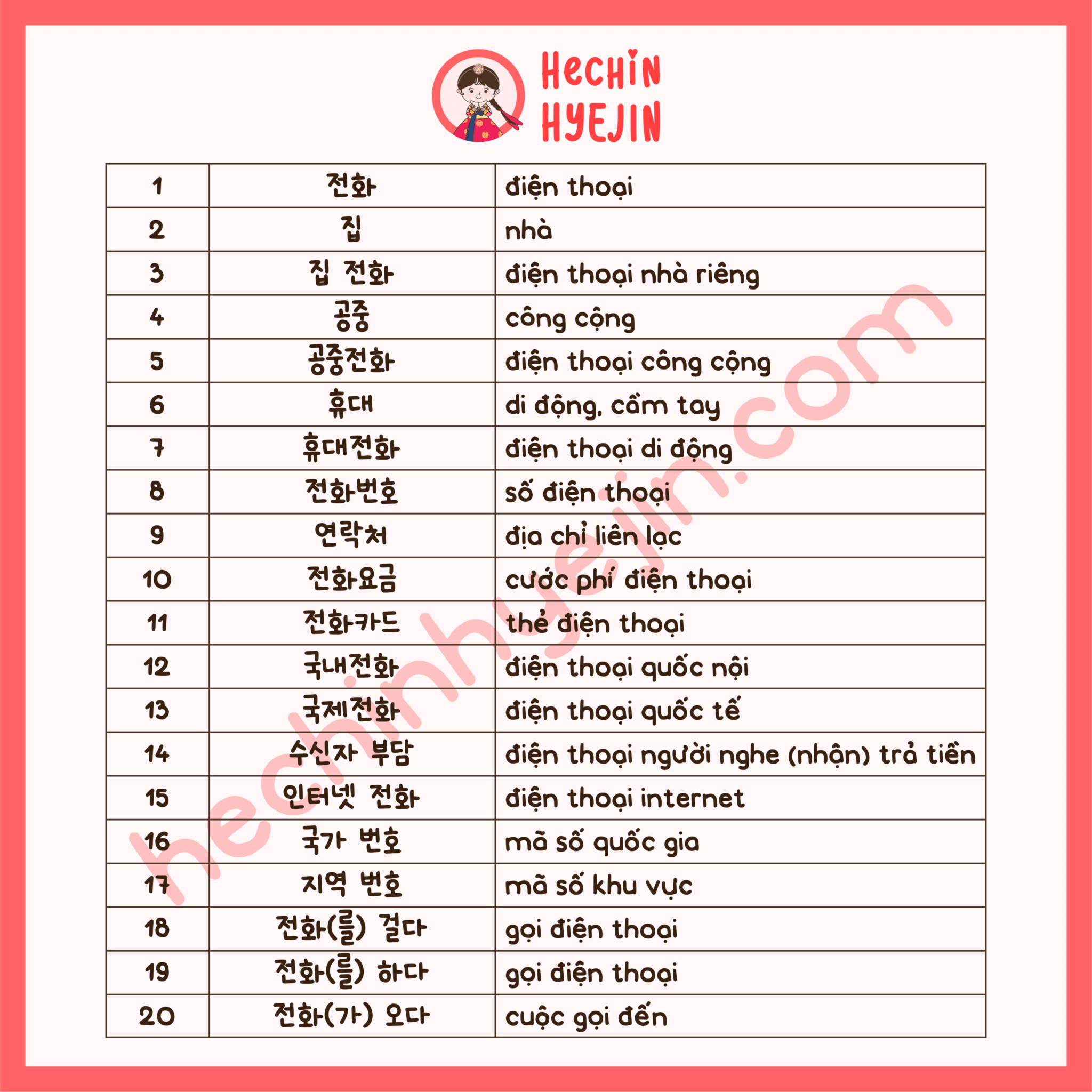 TỔNG HỢP TỪ VỰNG TIẾNG HÀN THEO CHỦ ĐỀ