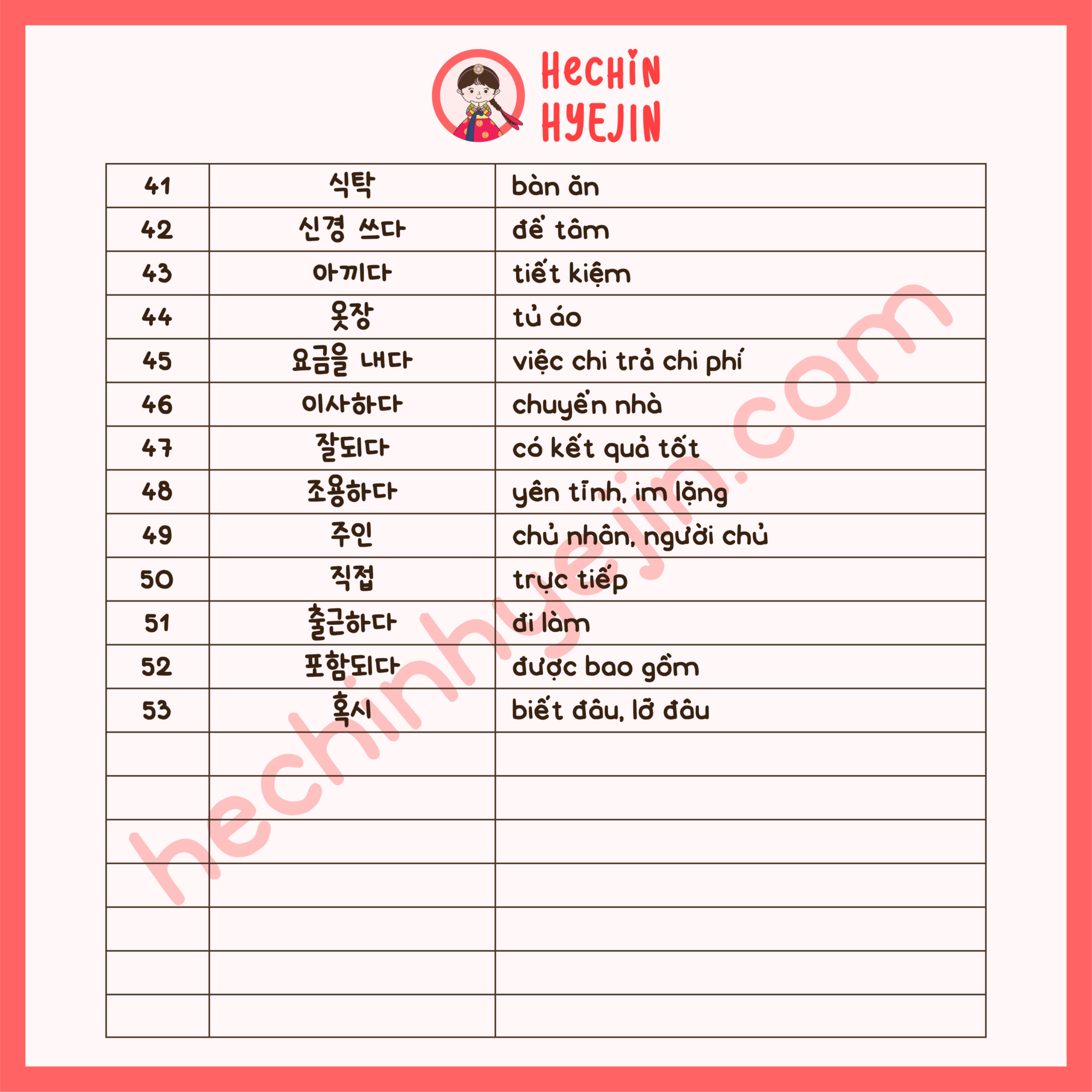 [Từ Vựng Tiếng Hàn]