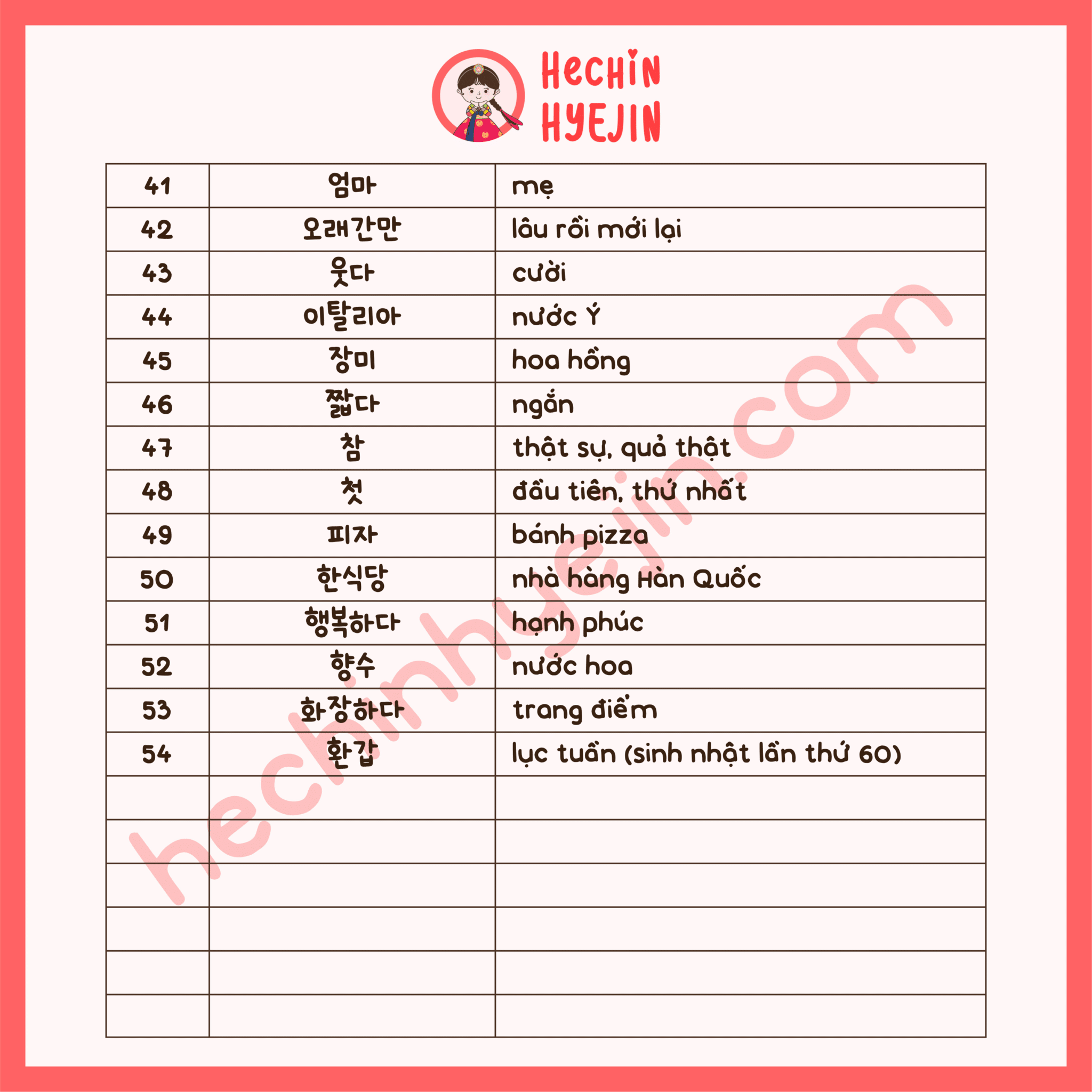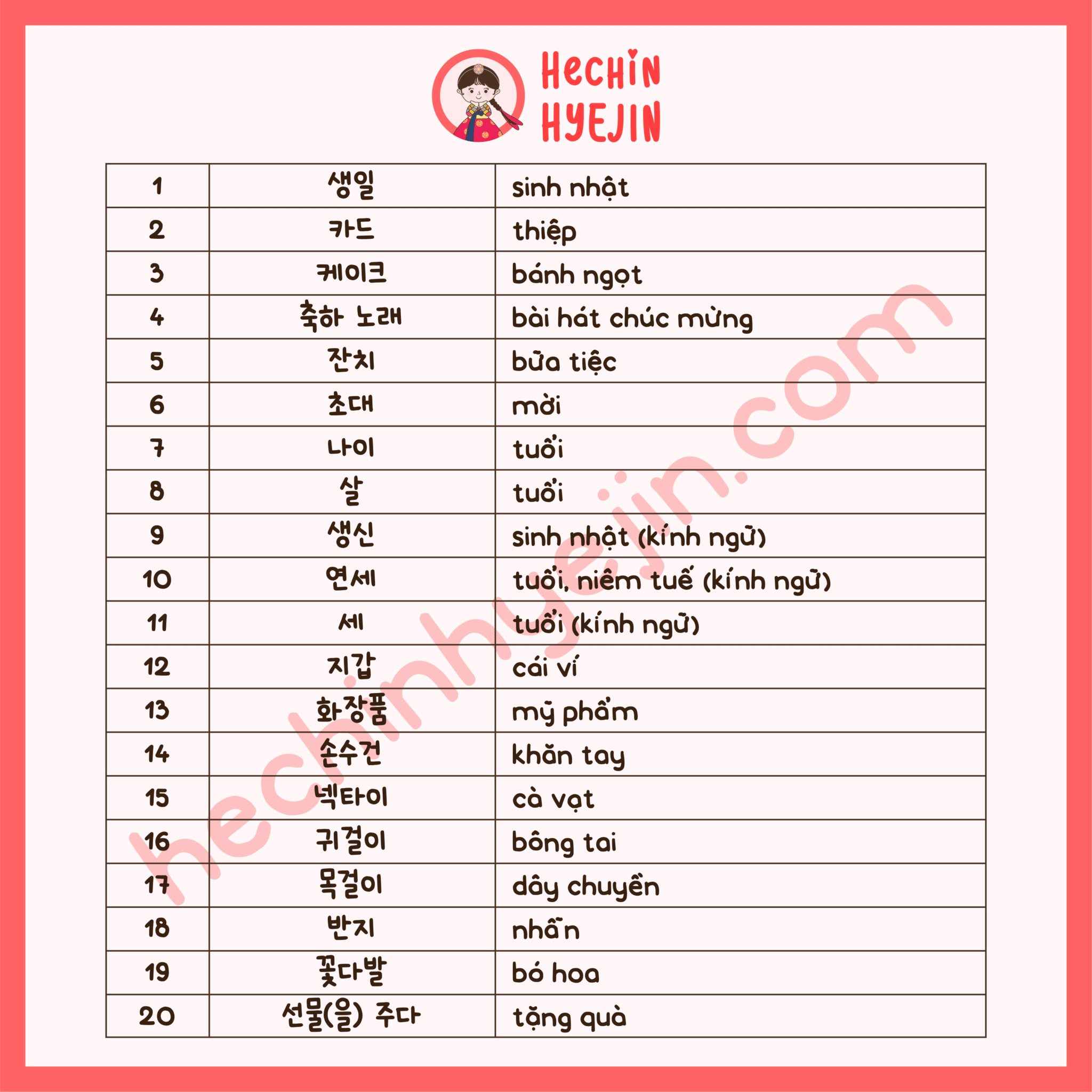 TỔNG HỢP TỪ VỰNG TIẾNG HÀN THEO CHỦ ĐỀ