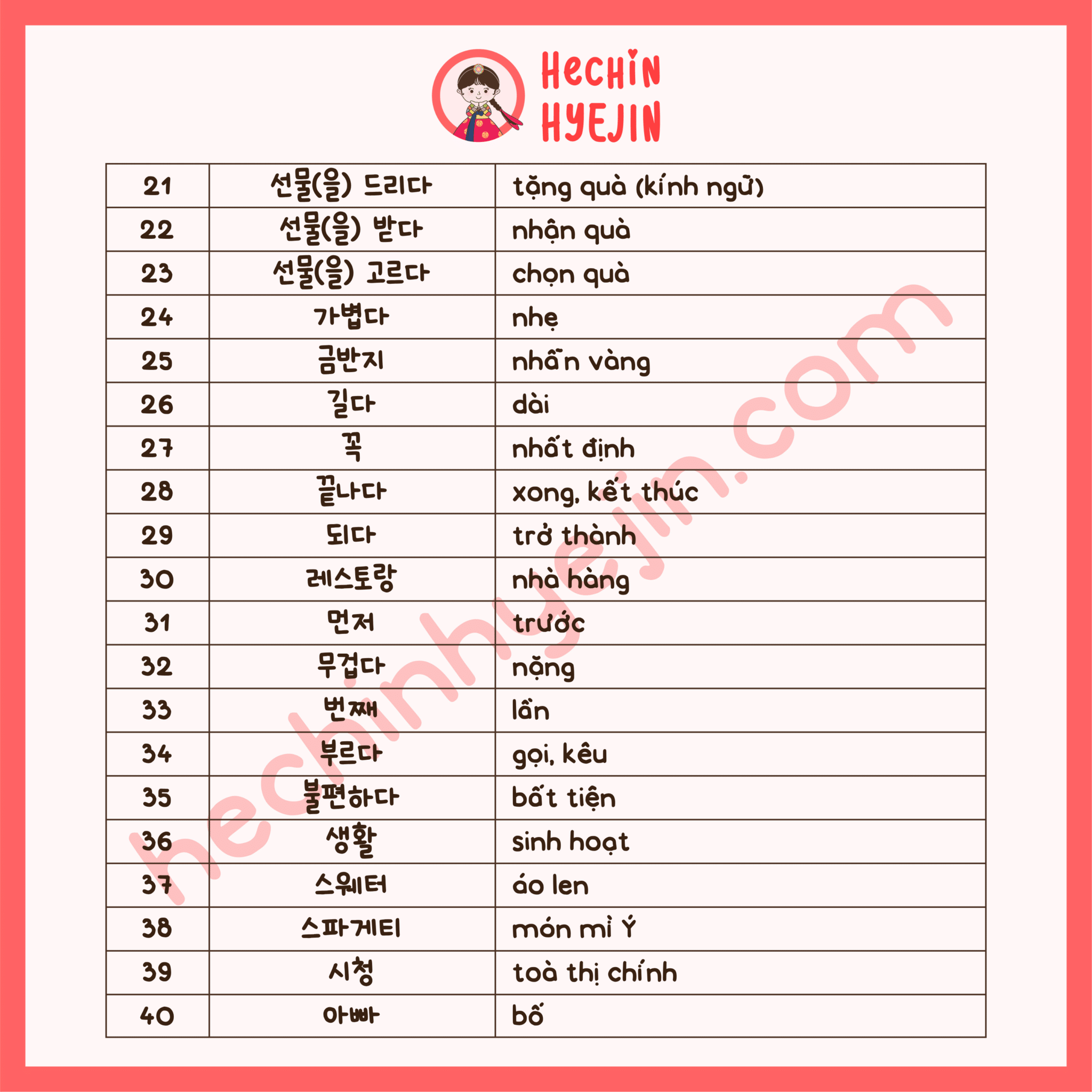 TỔNG HỢP TỪ VỰNG TIẾNG HÀN TOPIK 1 & 2