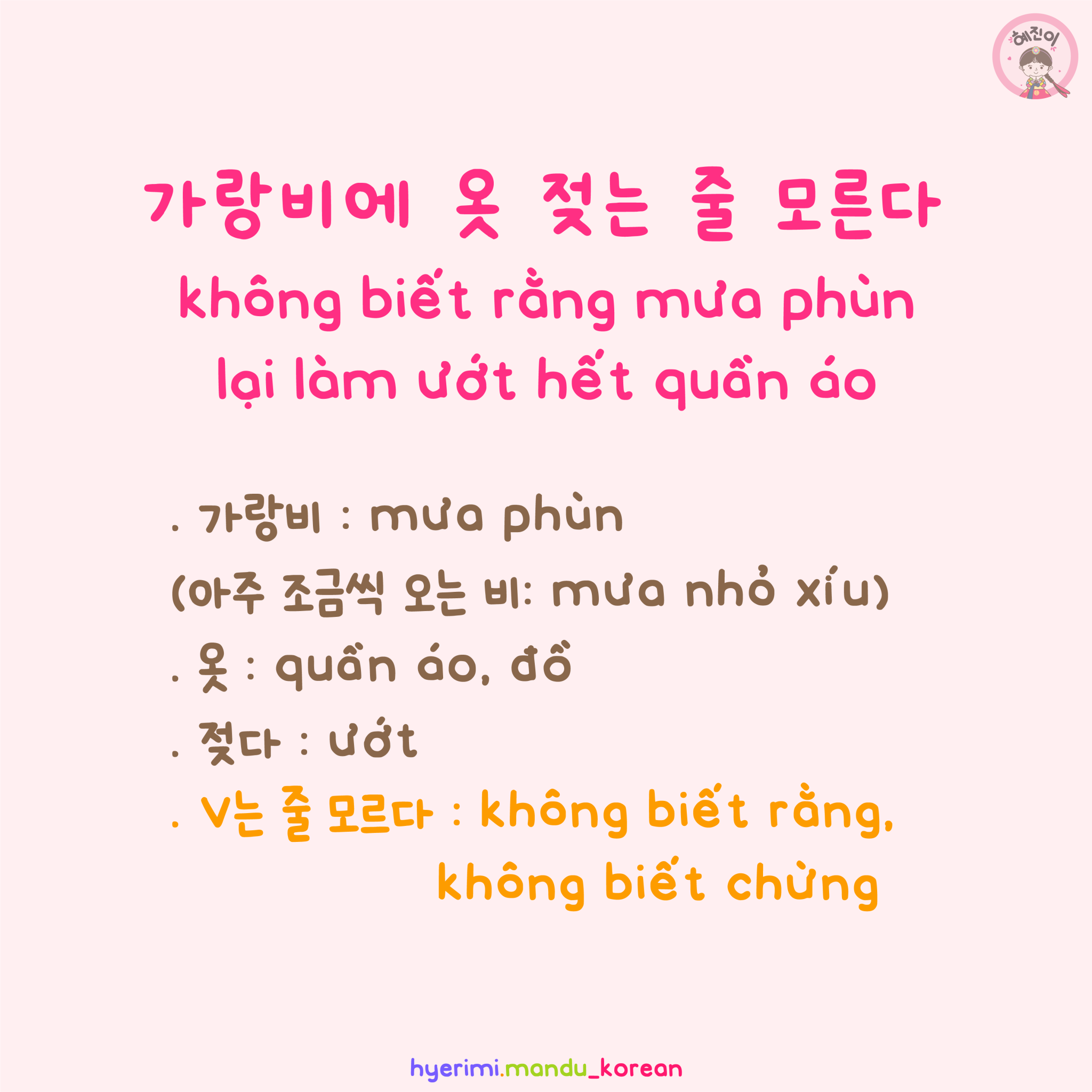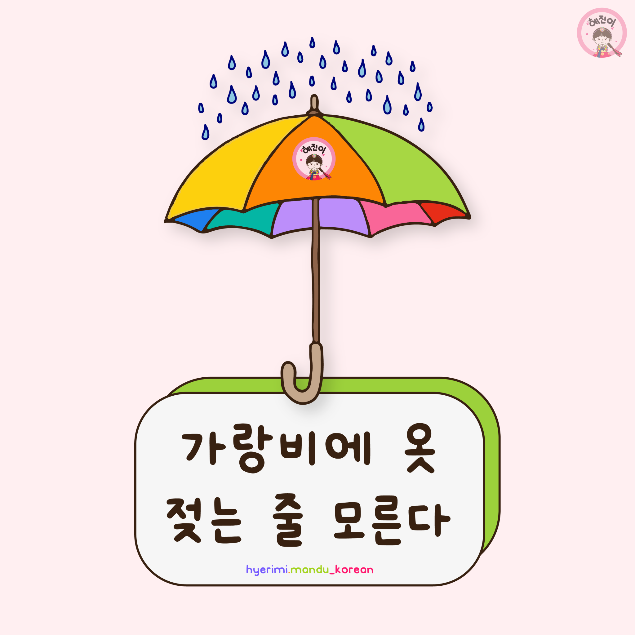[TỤC NGỮ] 가랑비에 옷 젖는 줄 모른다 (Không biết rằng mưa phùn lại làm ướt hết quần áo)