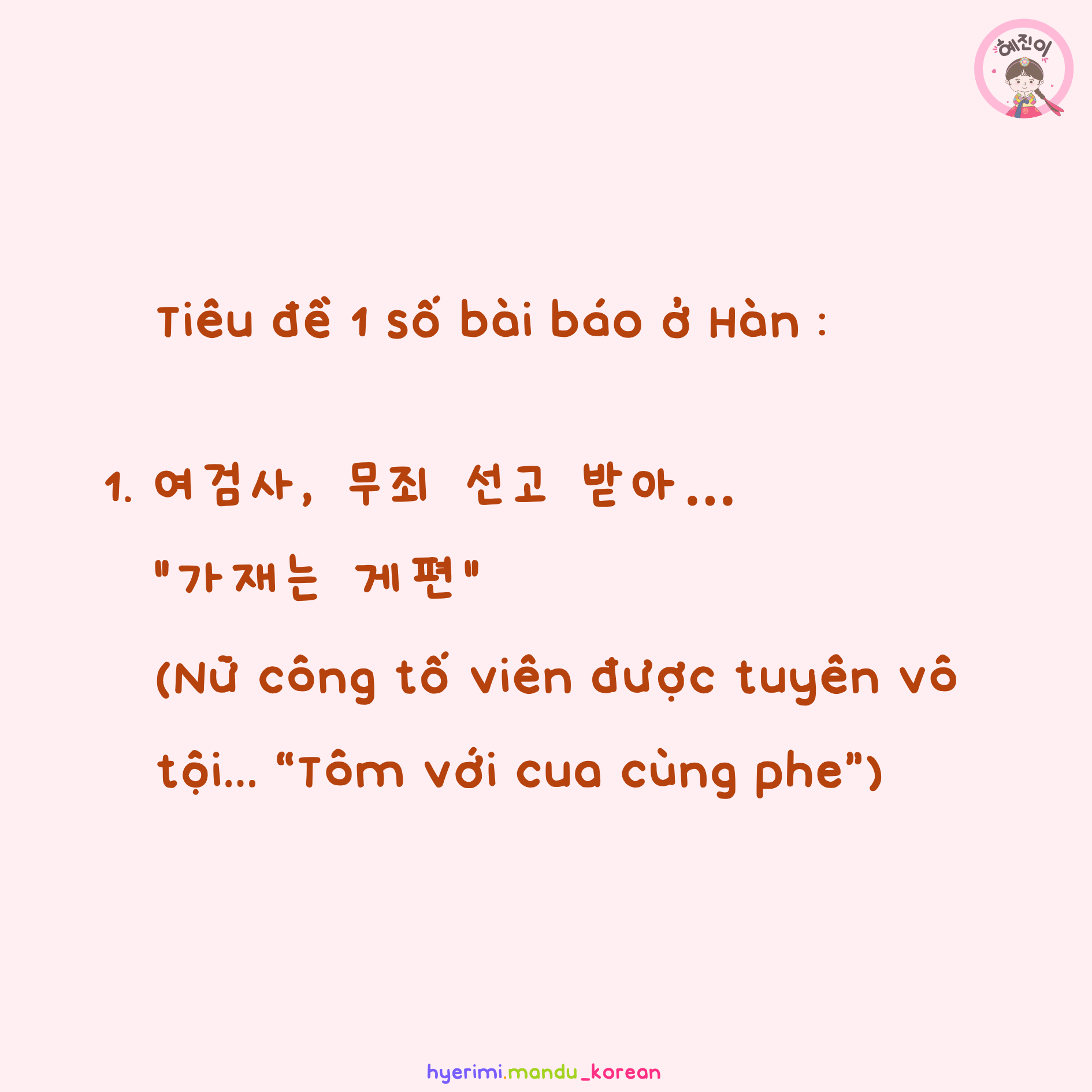 1. 여검사, 무죄 선고 받아… “가재는 게편” (Nữ công tố viên được tuyên vô tội… “Tôm với cua cùng phe”)