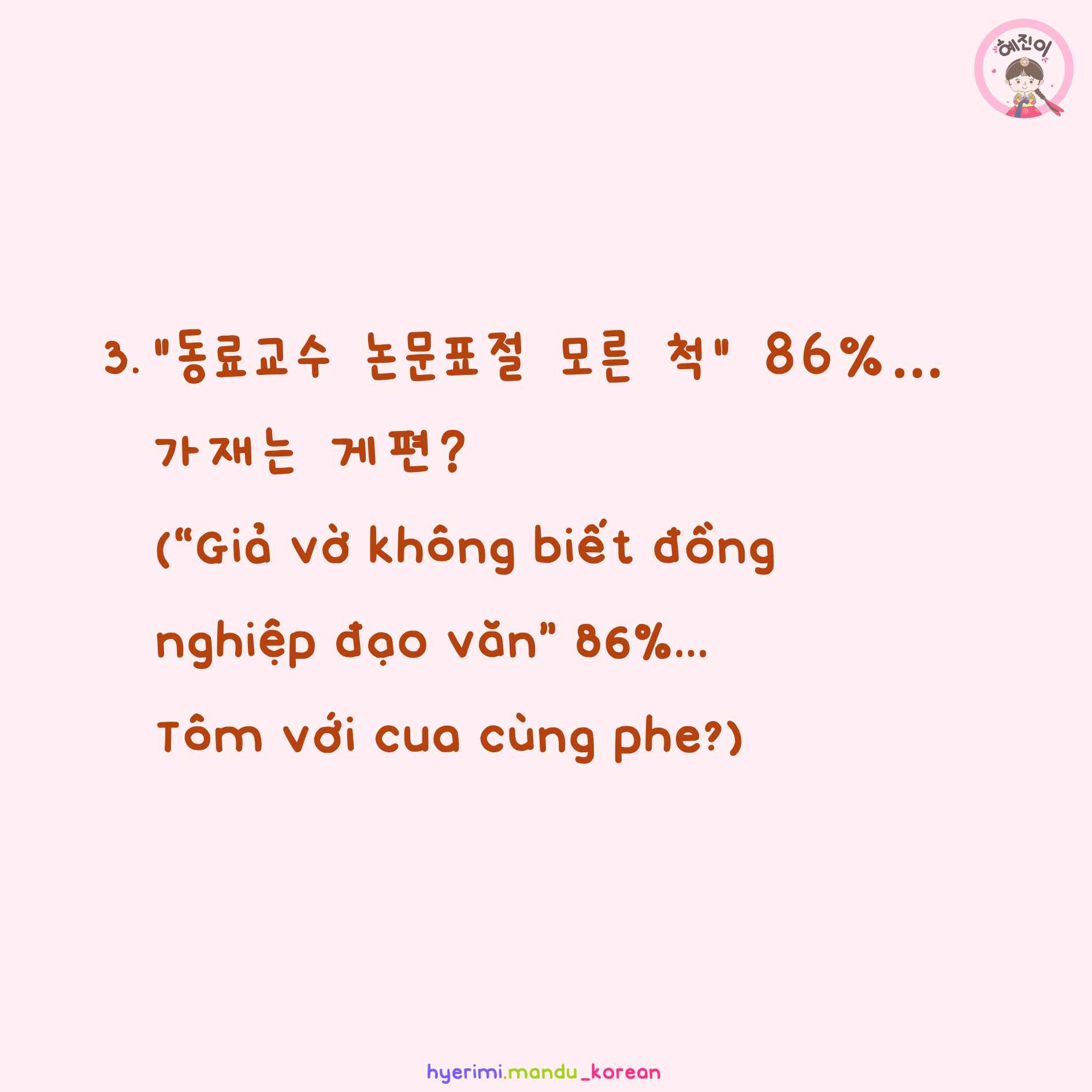 3. “동료교수 논문표절 모른 척” 86%… 가재는 게편? (“Giả vờ không biết đồng nghiệp đạo văn” 86%… Tôm với cua cùng phe?)