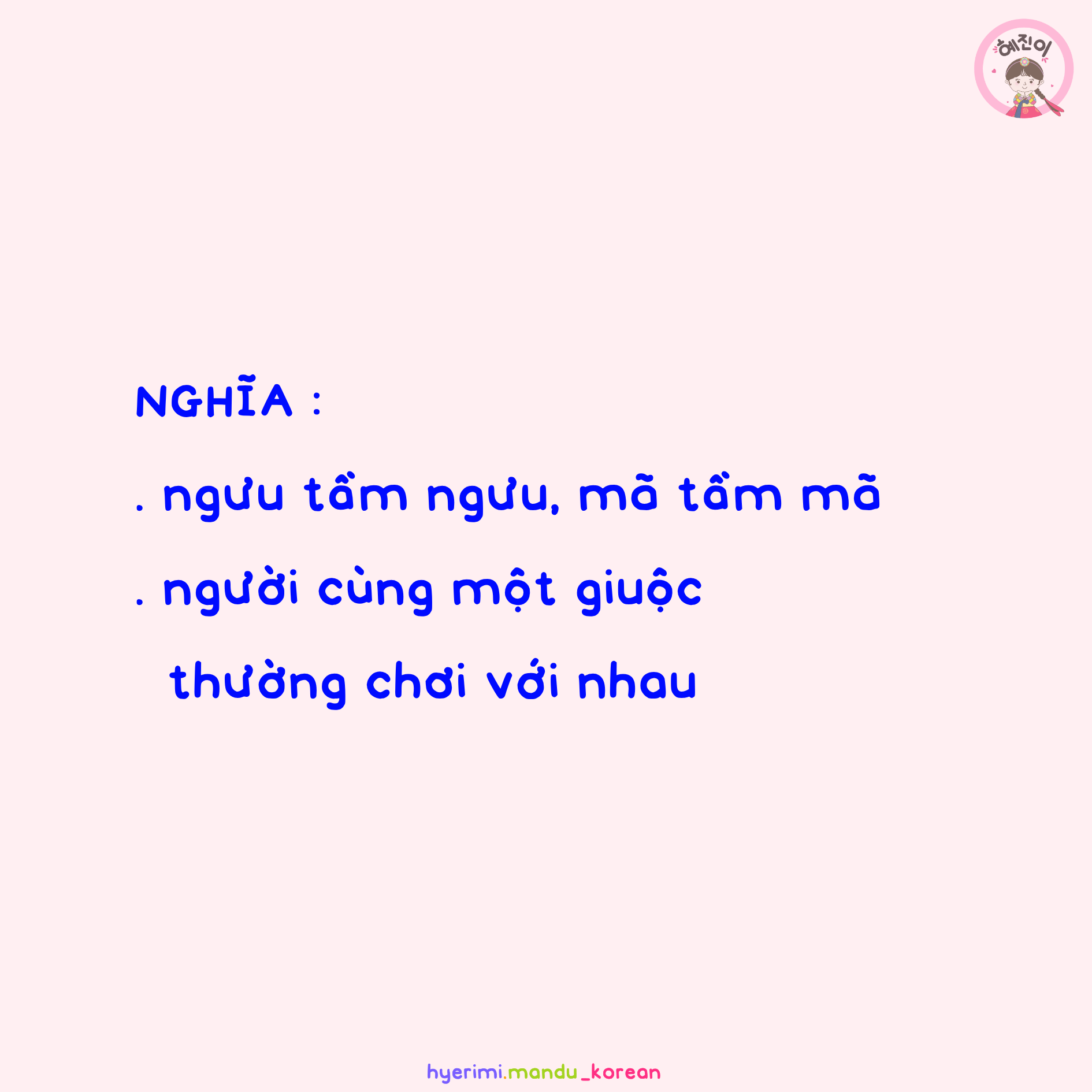 NGHĨA : . ngưu tầm ngưu, mã tầm mã . người cùng một giuộc thường chơi với nhau