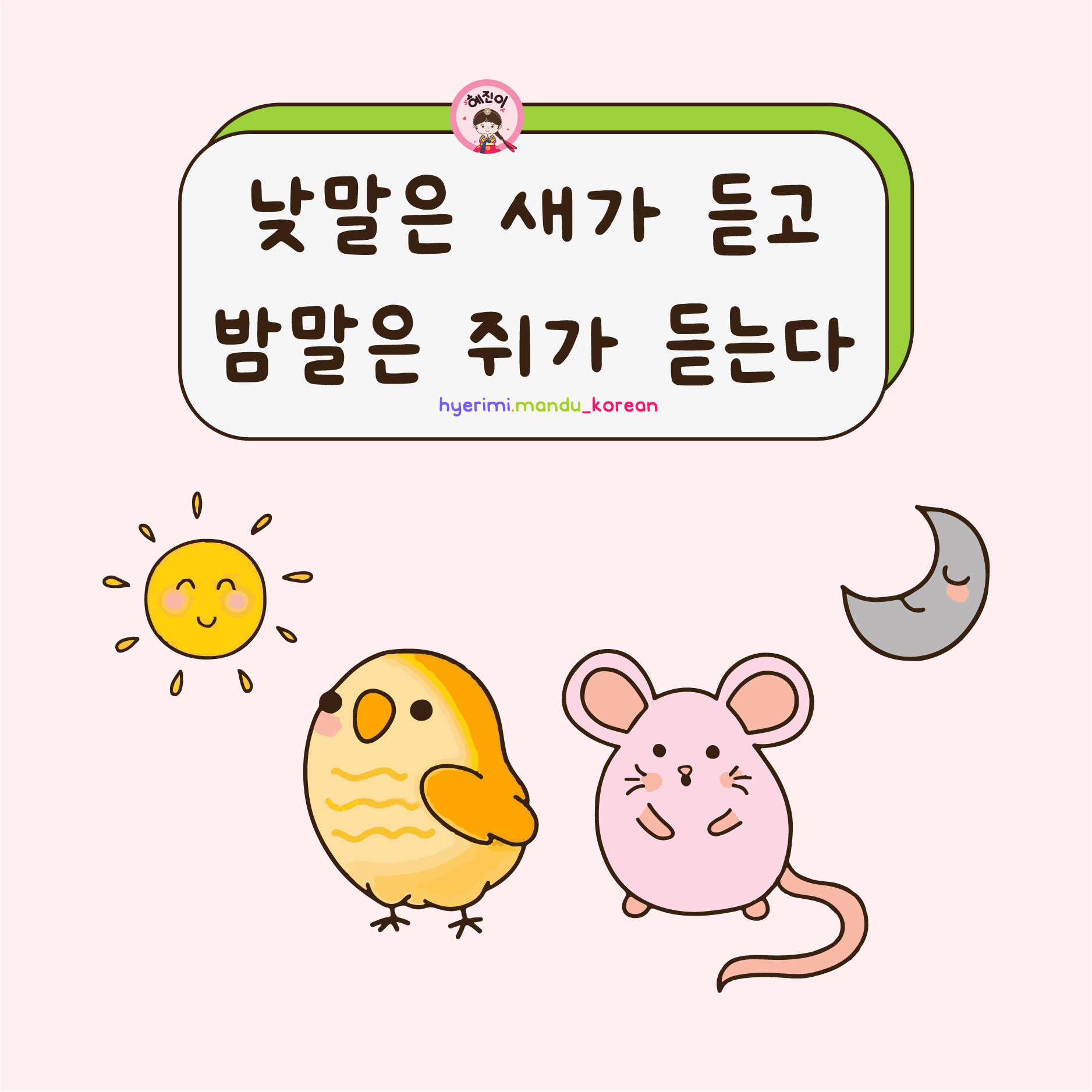 [TỤC NGỮ] 낮말은 새가 듣고 밤말은 쥐가 듣는다 (Lời nói ban ngày thì có chim nghe lời nói ban đêm thì có chuột nghe)