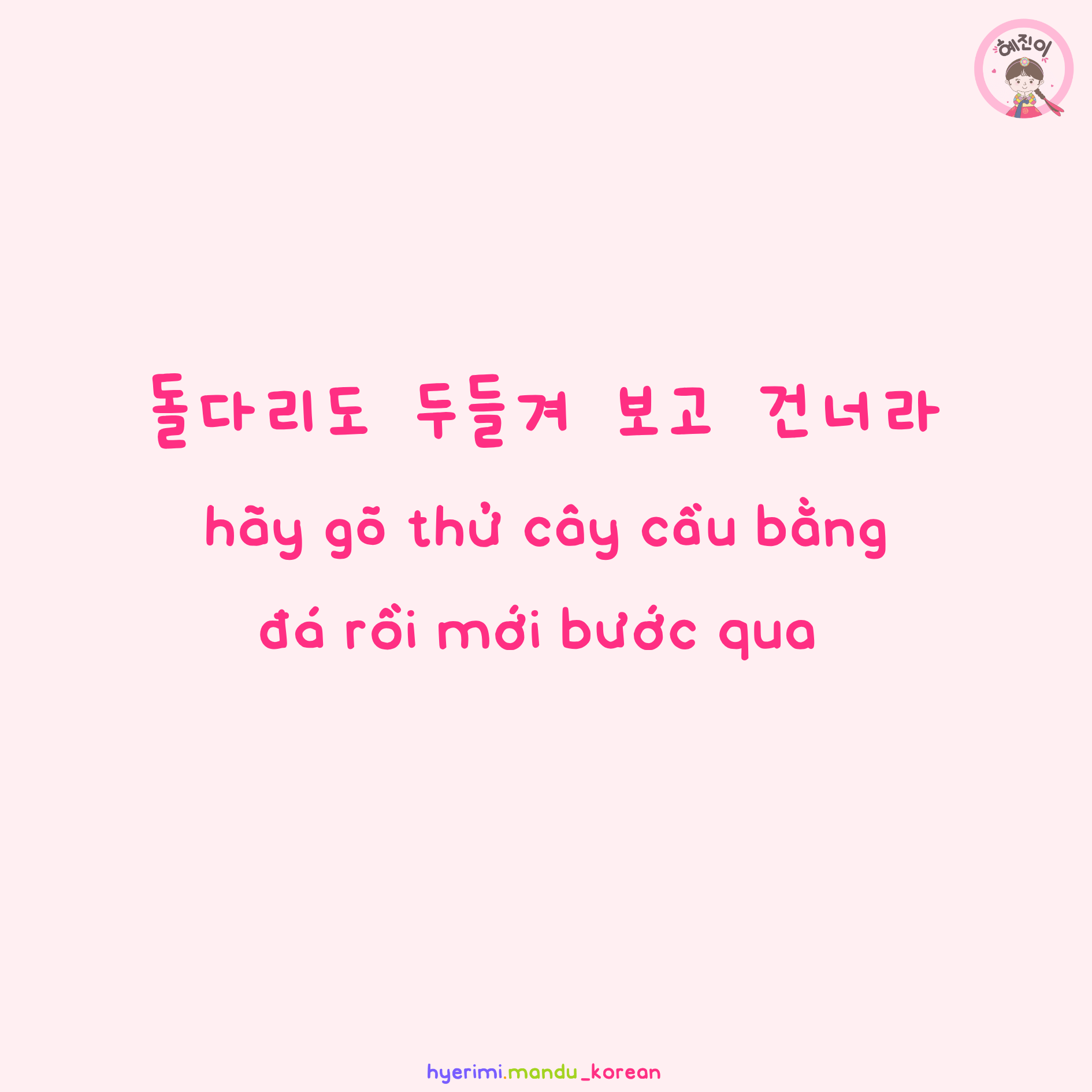 [TỤC NGỮ] 돌다리도 두들겨 보고 건너라 (Cầu đá cũng phải gõ thử rồi mới đi)