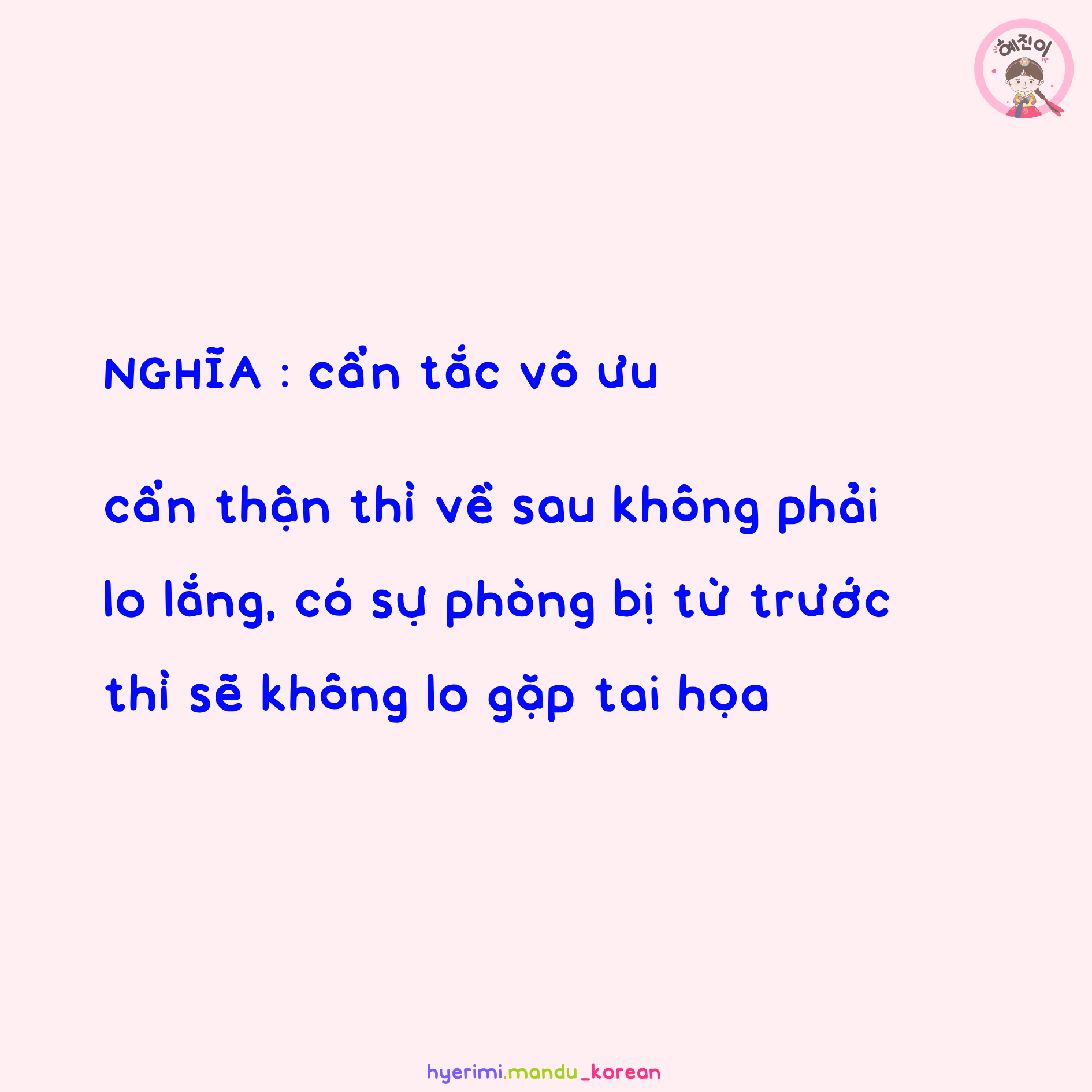 NGHĨA : cẩn tắc vô ưu