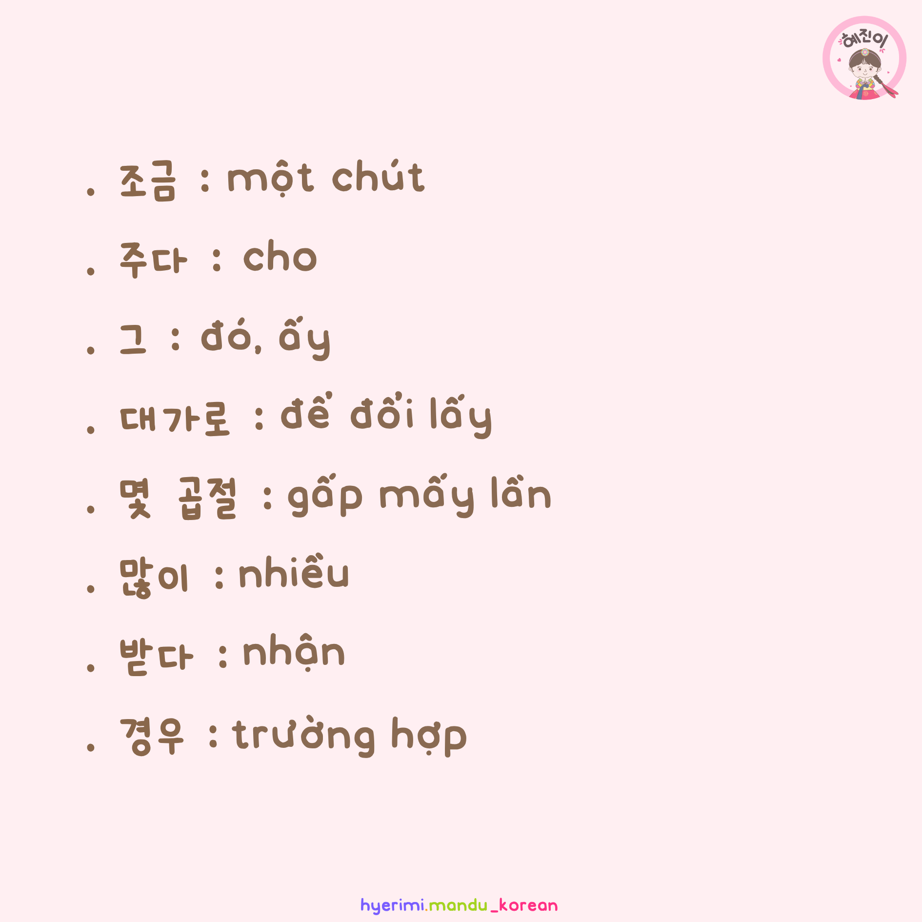 . 조금 : một chút . 주다 : cho . 그 : đó, ấy . 대가로 : để đổi lấy . 몇 곱절 : gấp mấy lần . 많이 : nhiều . 받다 : nhận . 경우 : trường hợp
