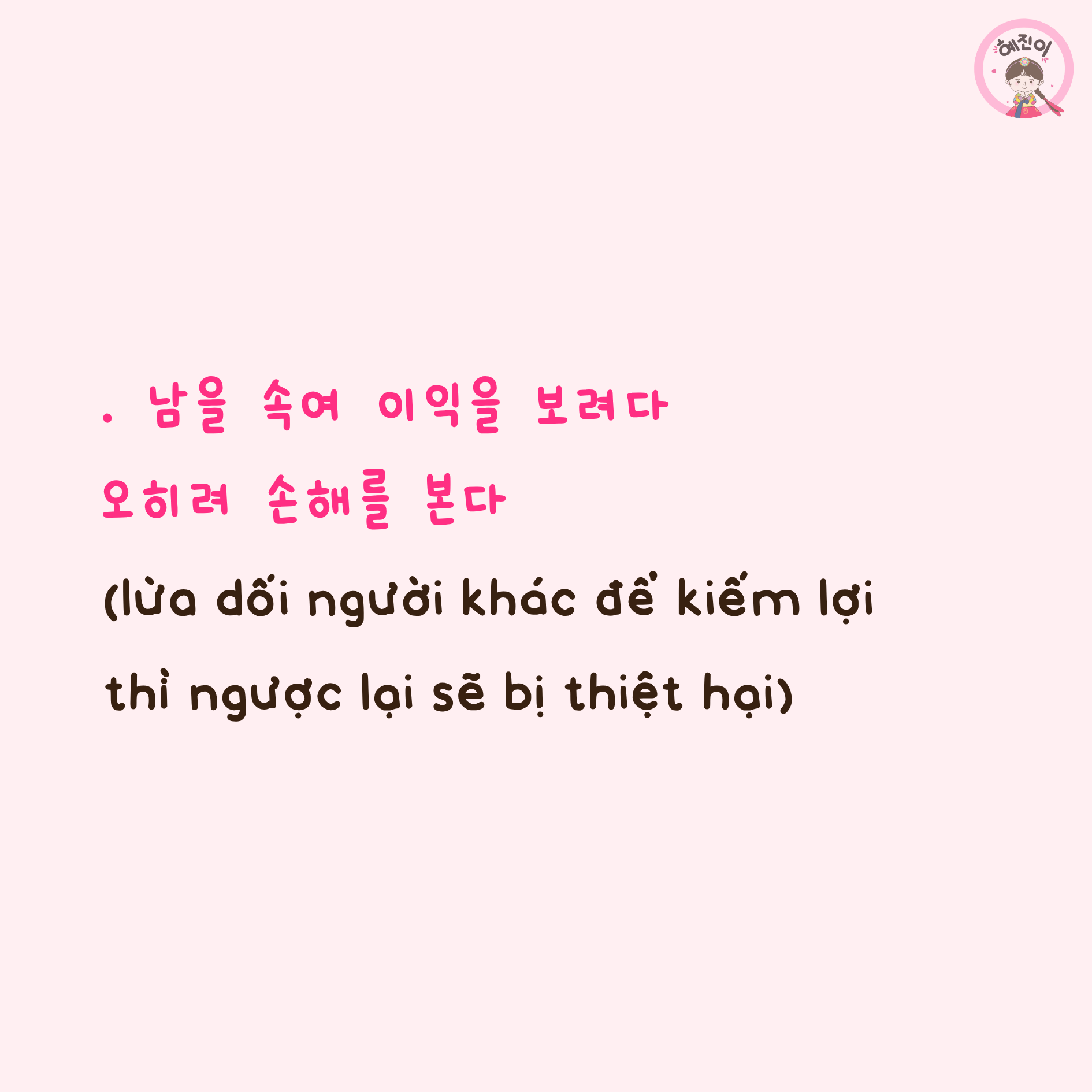 . 남을 속여 이익을 보려다 오히려 손해를 본다 (lừa dối người khác để kiếm lợi thì ngược lại sẽ bị thiệt hại)