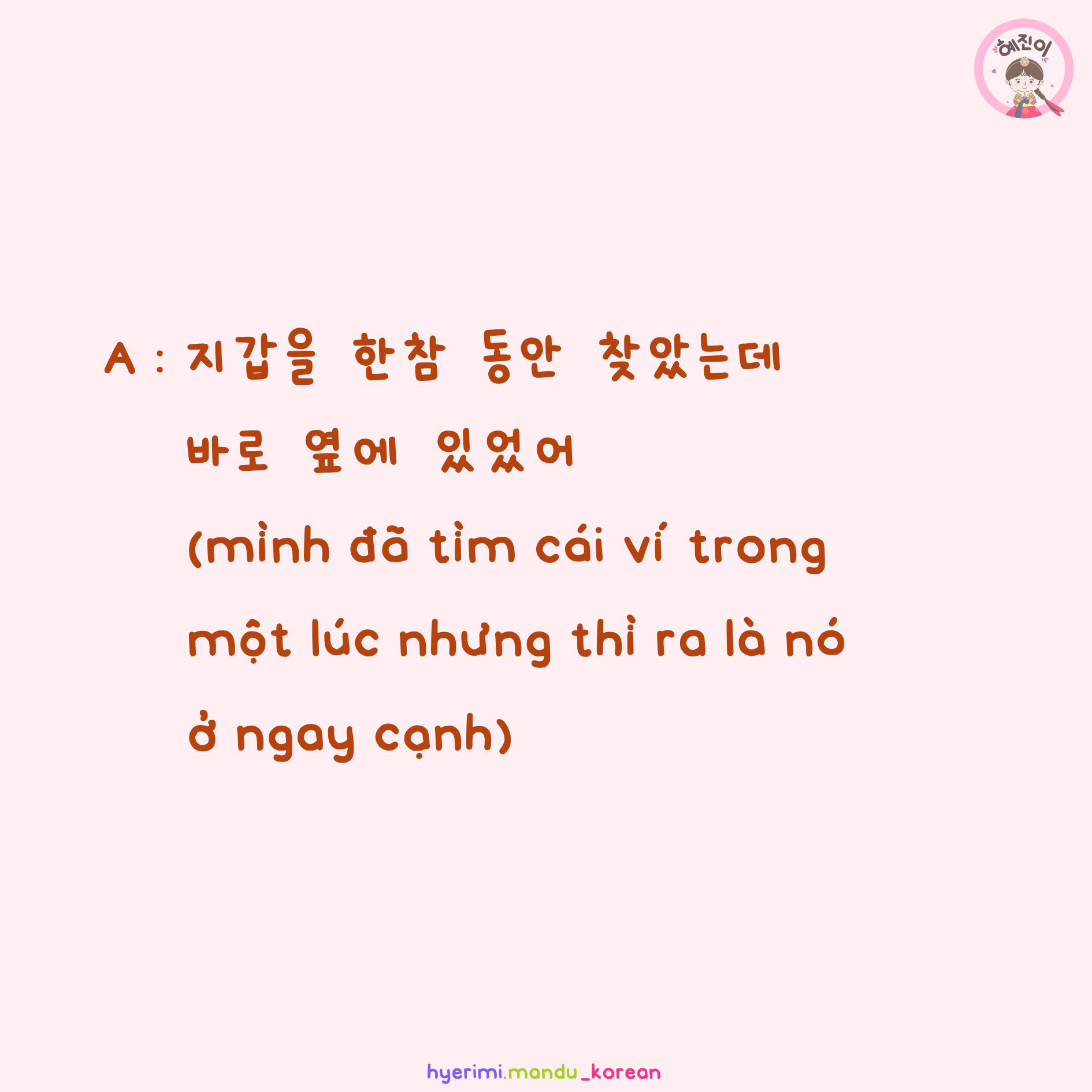 A : 지갑을 한참 동안 찾았는데 바로 옆에 있었어