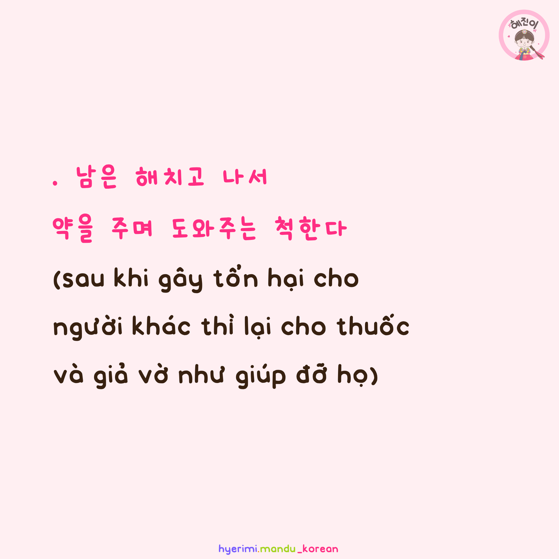. 해치다 : gây tổn hại