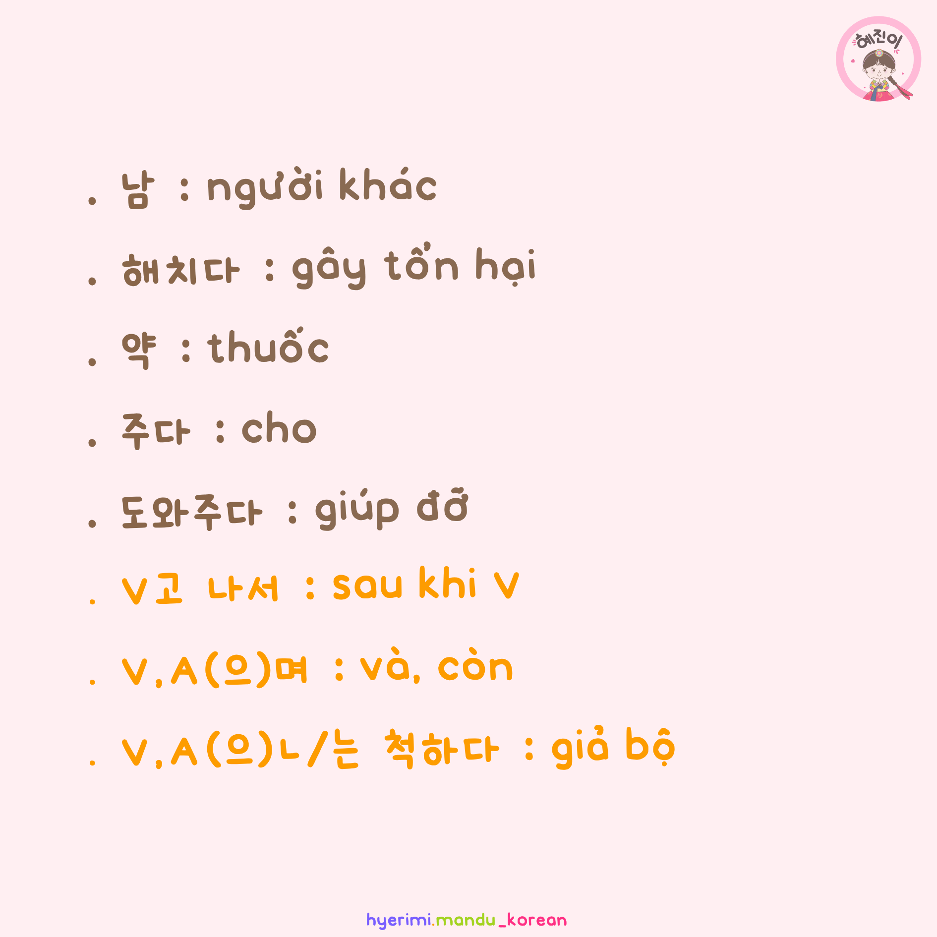 . 도와주다 : giúp đỡ