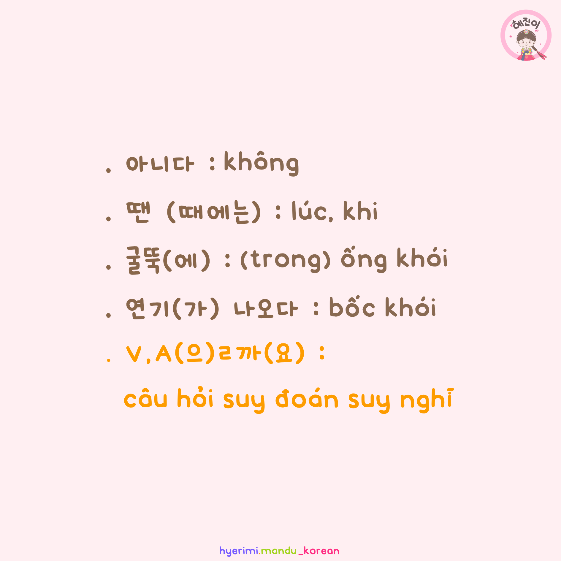 . 굴뚝(에) : (trong) ống khói