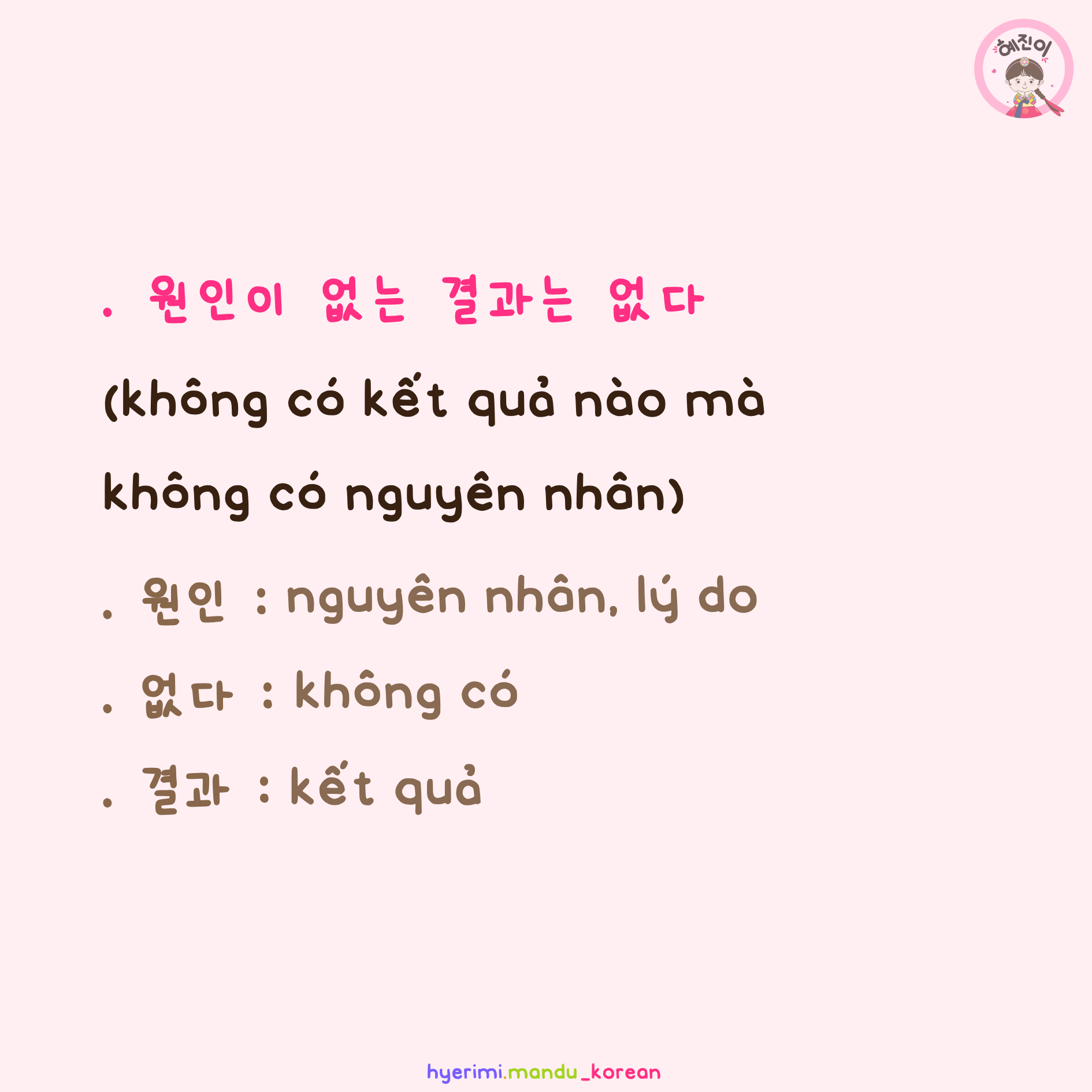 . 원인 : nguyên nhân, lý do