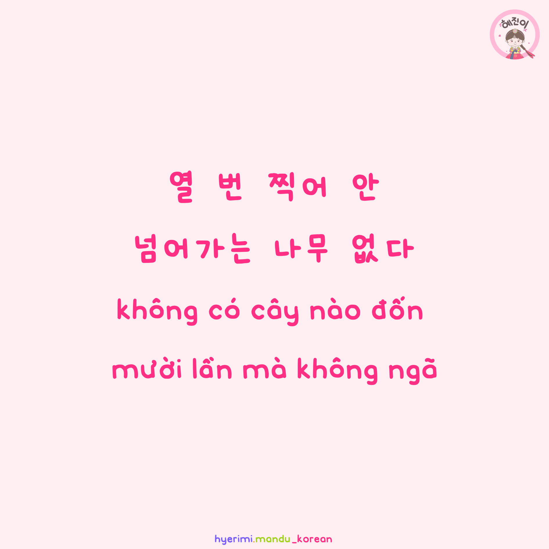 [TỤC NGỮ] 열 번 찍어 안 넘어가는 나무 없다 (Không có cây nào bị chặt mười lần mà không đổ)
