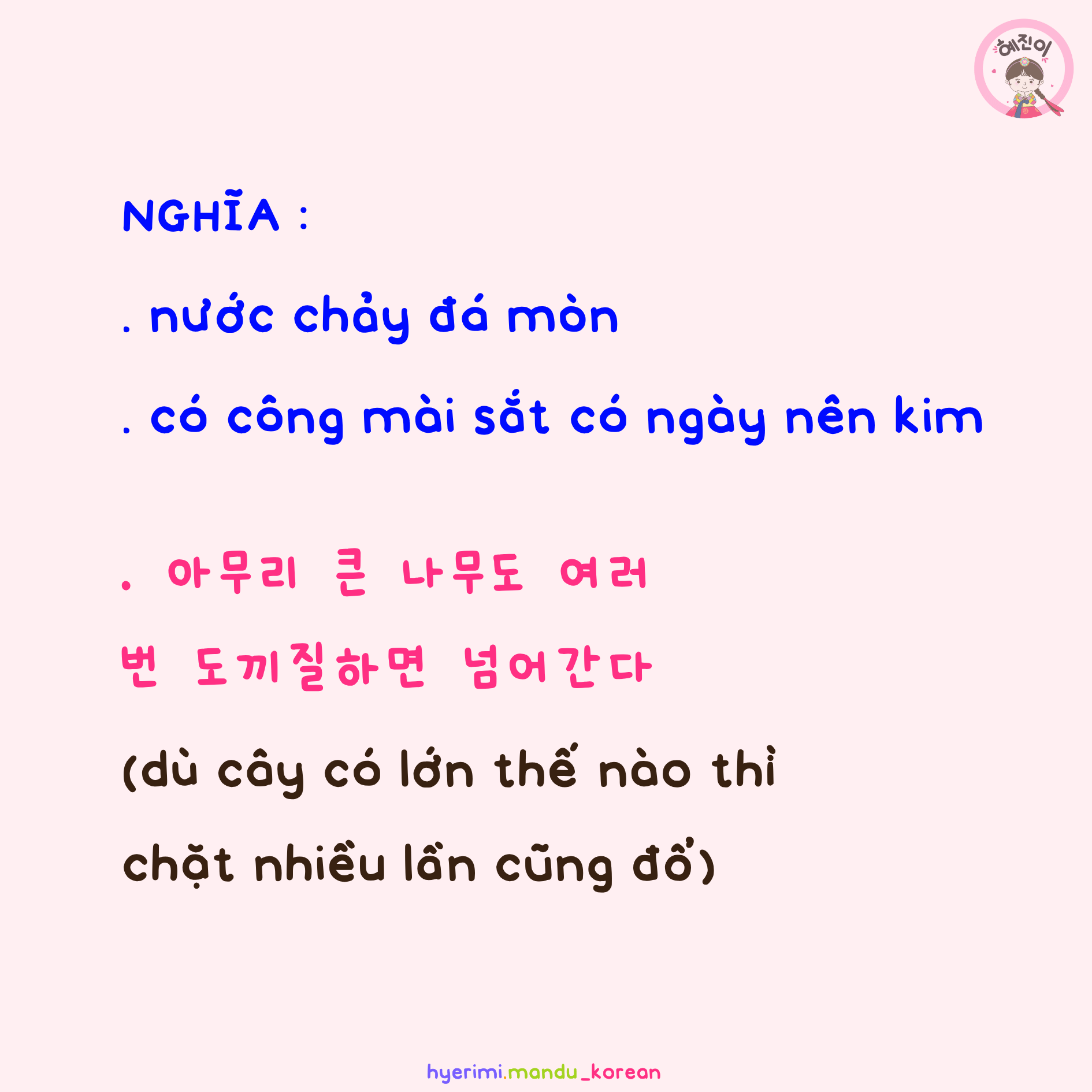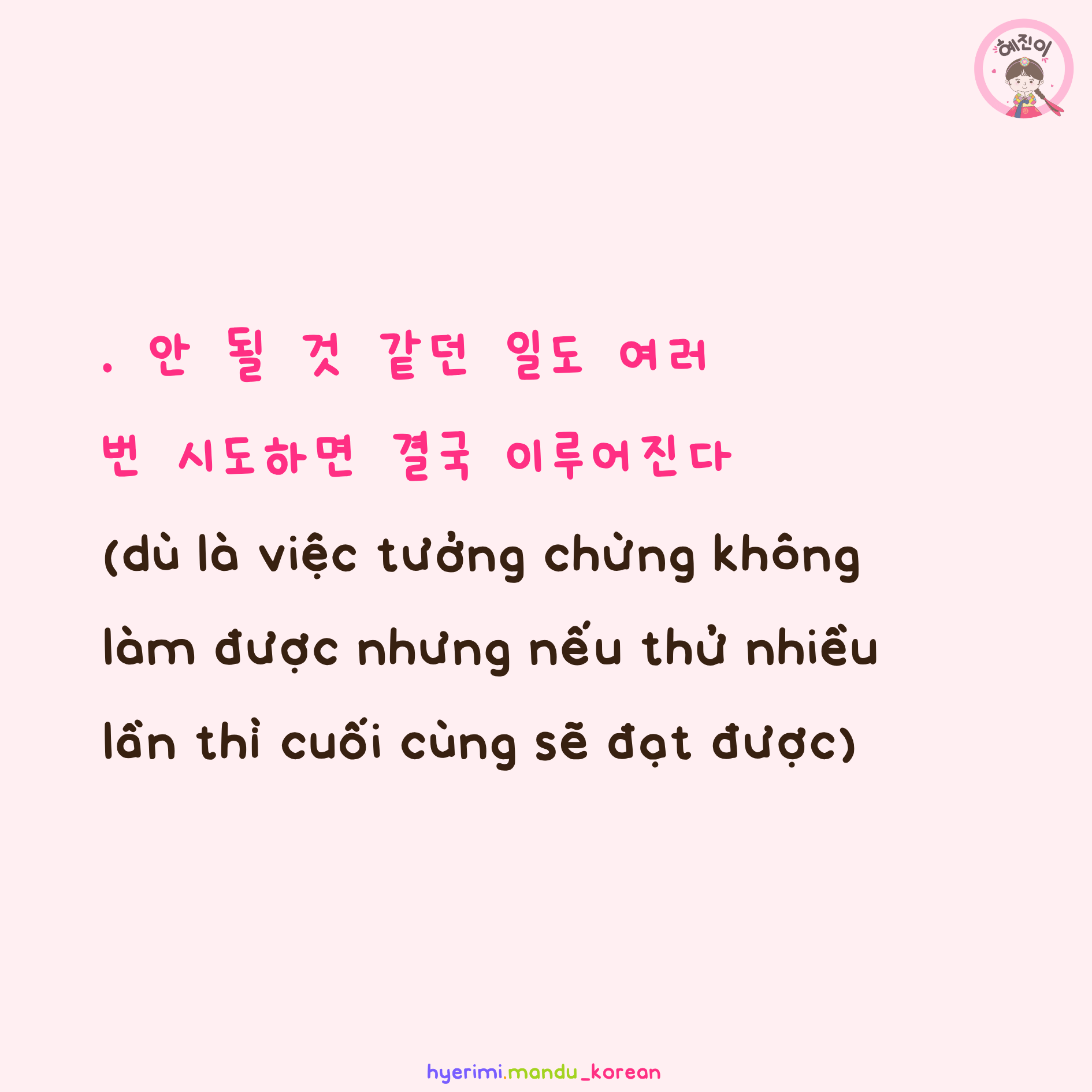 . 안 될 것 같던 일도 여러 번 시도하면 결국 이루어진다 (dù là việc tưởng chừng không làm được nhưng nếu thử nhiều lần thì cuối cùng sẽ đạt được)