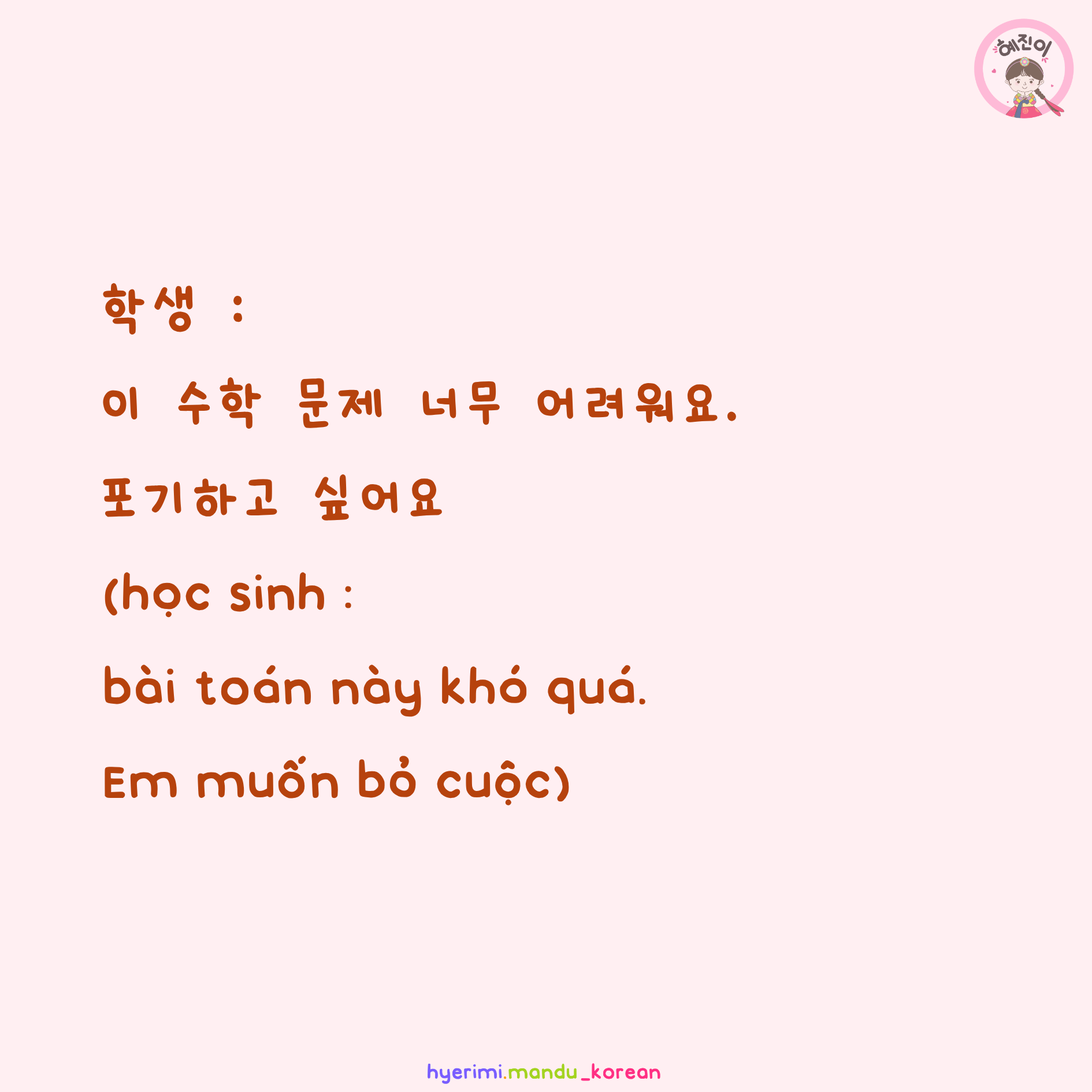 학생 : 이 수학 문제 너무 어려워요. 포기하고 싶어요 (học sinh : bài toán này khó quá. Em muốn bỏ cuộc)