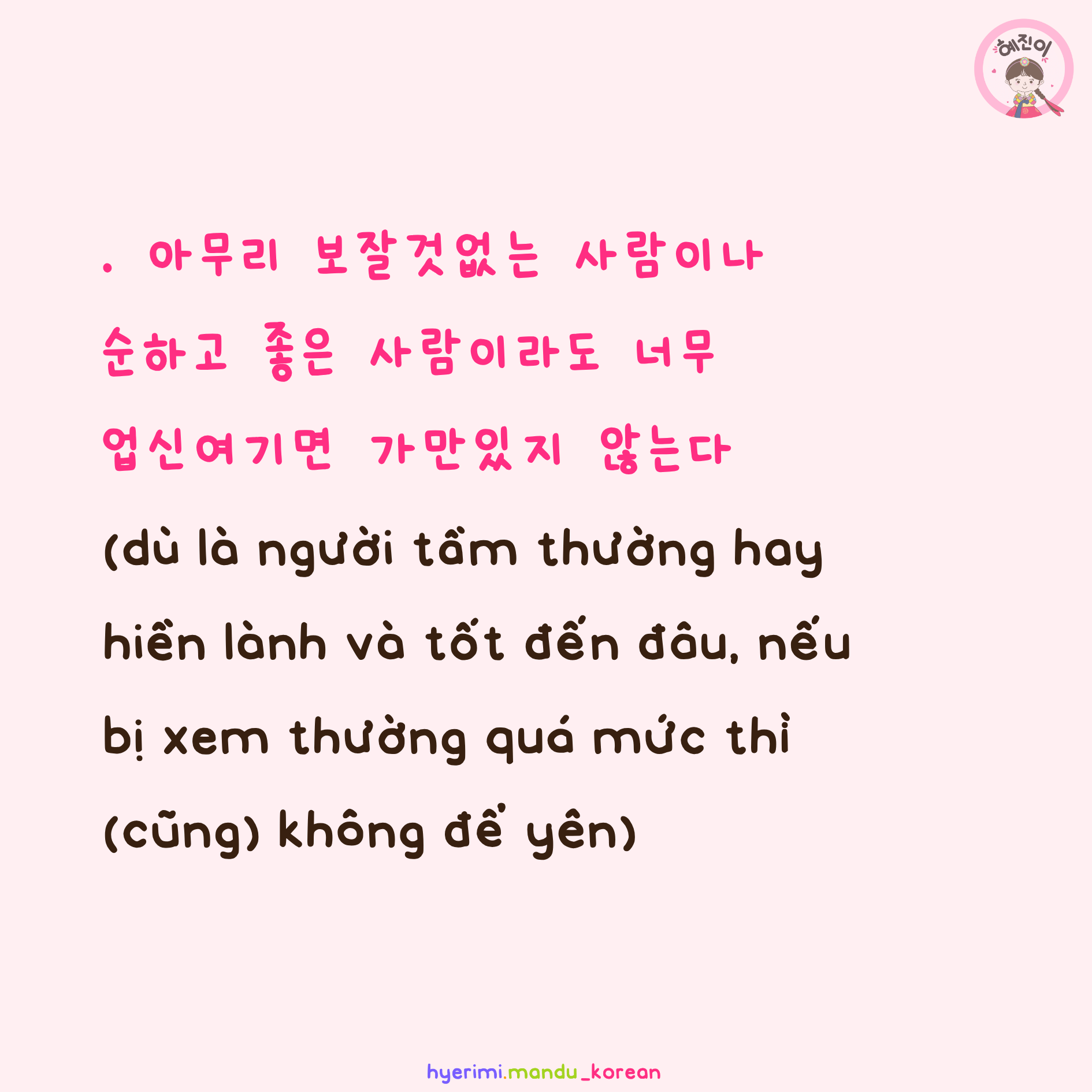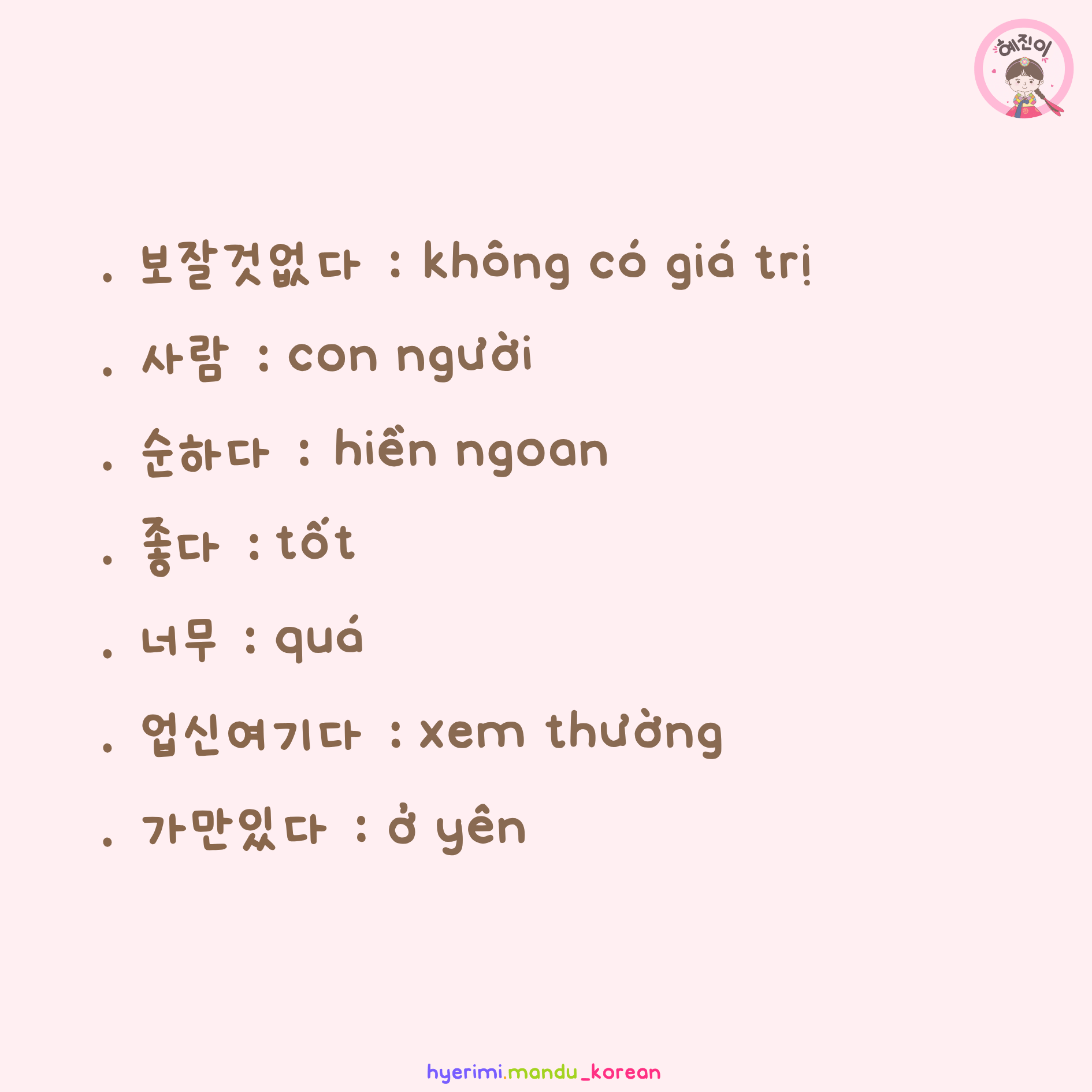 . 보잘것없다 : không có giá trị . 사람 : con người . 순하다 : hiền ngoan . 좋다 : tốt . 너무 : quá . 업신여기다 : xem thường . 가만있다 : ở yên