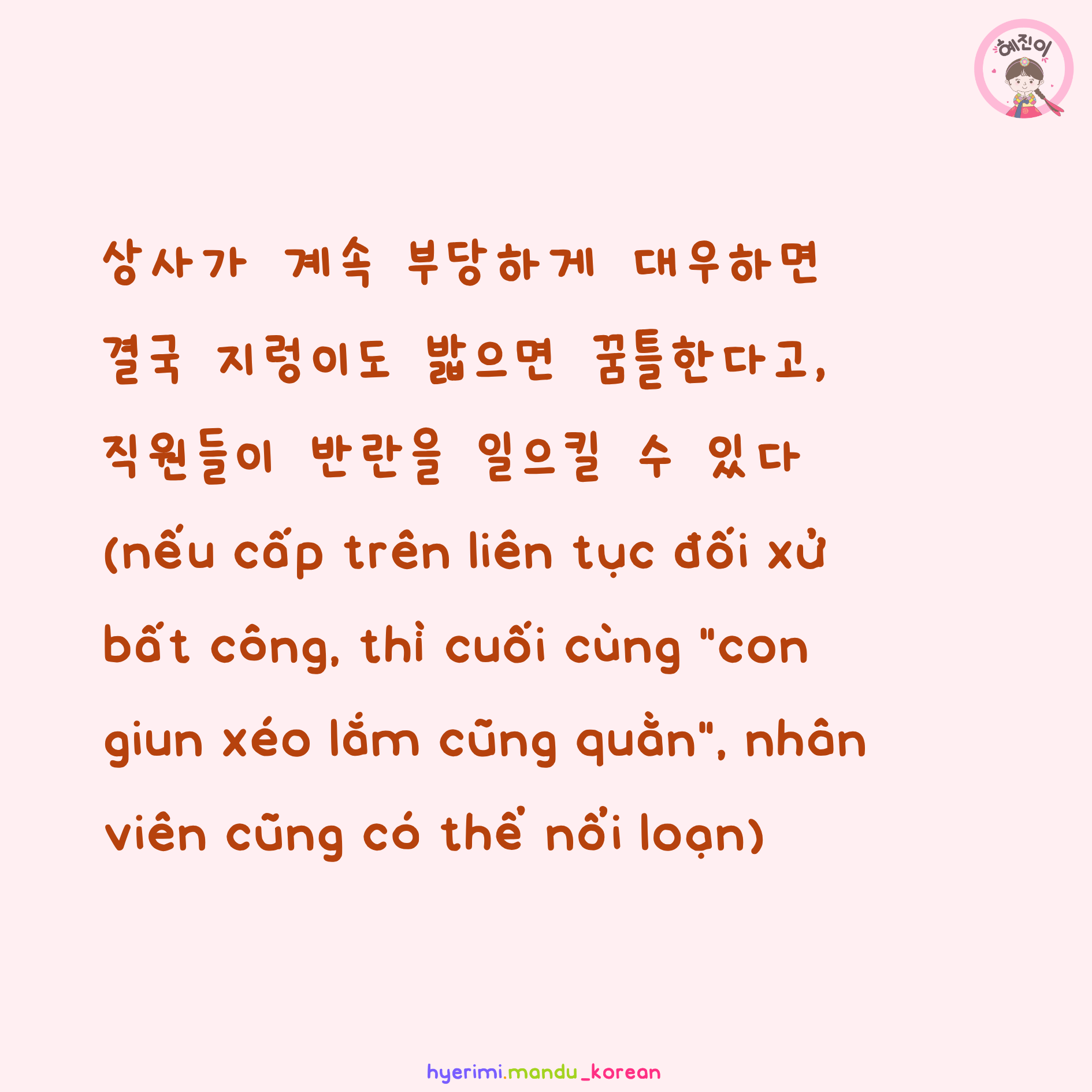상사가 계속 부당하게 대우하면 결국 지렁이도 밟으면 꿈틀한다고, 직원들이 반란을 일으킬 수 있다 (nếu cấp trên liên tục đối xử bất công, thì cuối cùng "con giun xéo lắm cũng quằn", nhân viên cũng có thể nổi loạn)