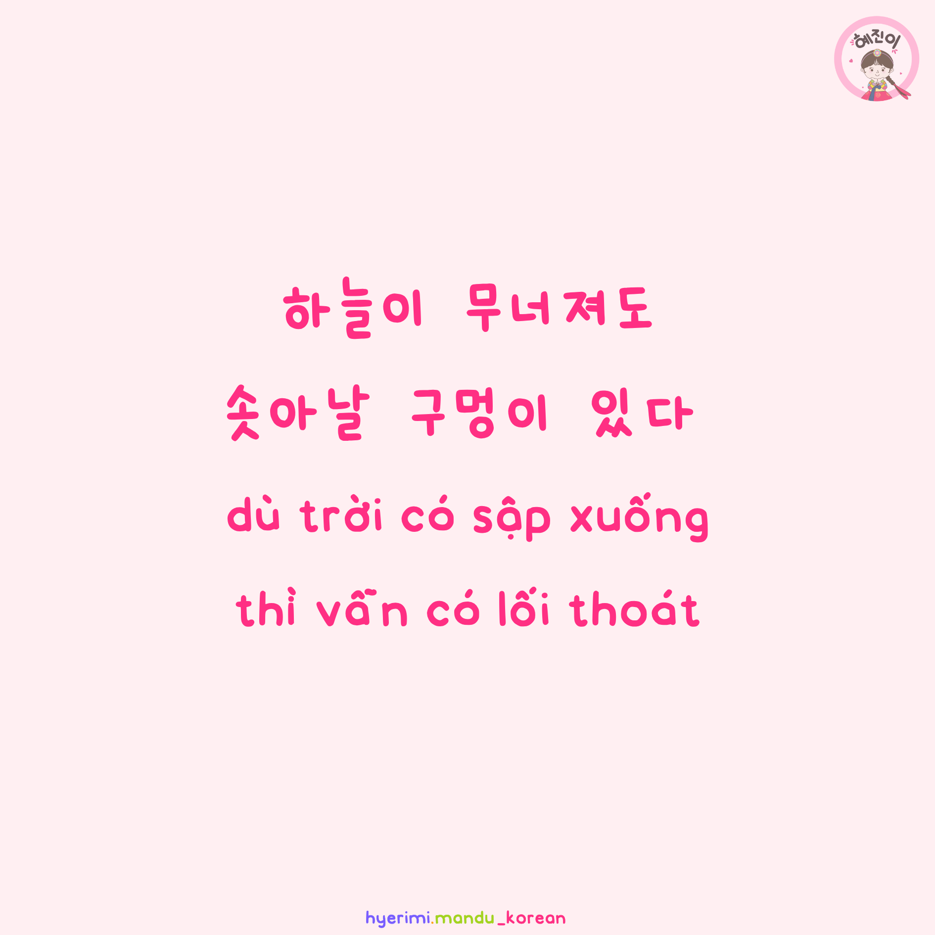 [TỤC NGỮ] 하늘이 무너져도 솟아날 구멍이 있다 (Dù trời có sập xuống thì vẫn có lối thoát)