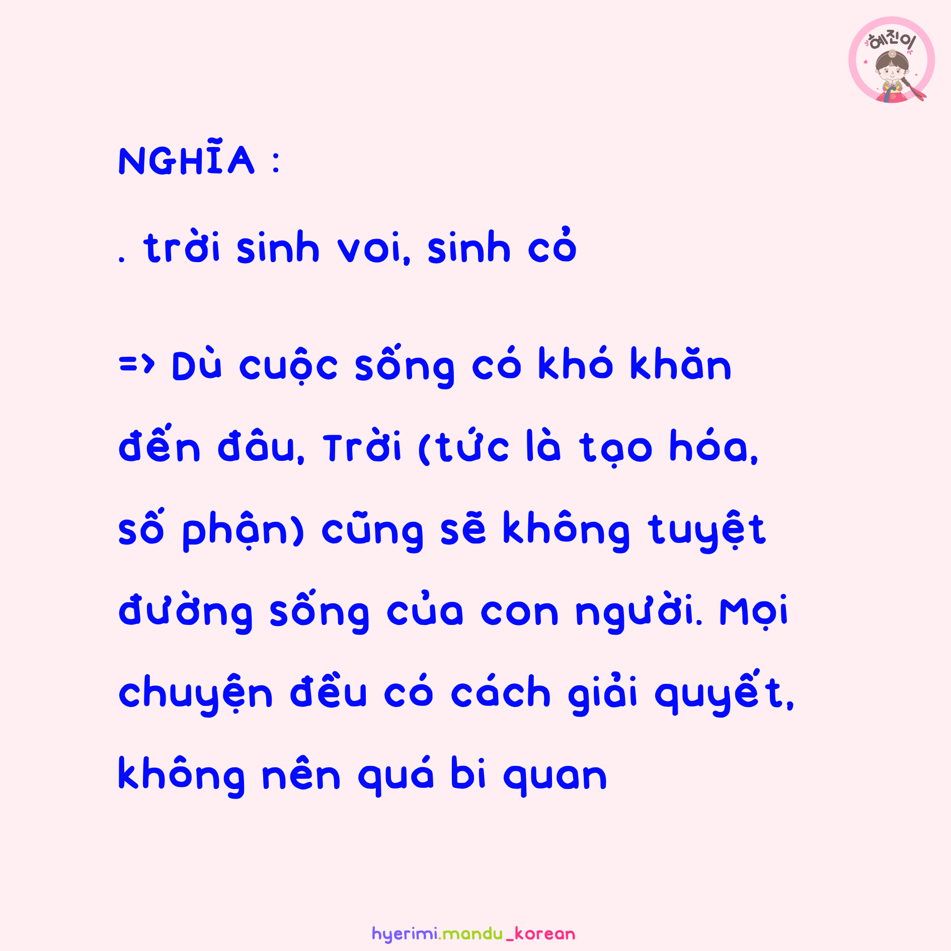 하늘이 무너져도 솟아날 구멍이 있다 dù trời có sập xuống thì vẫn có lối thoát